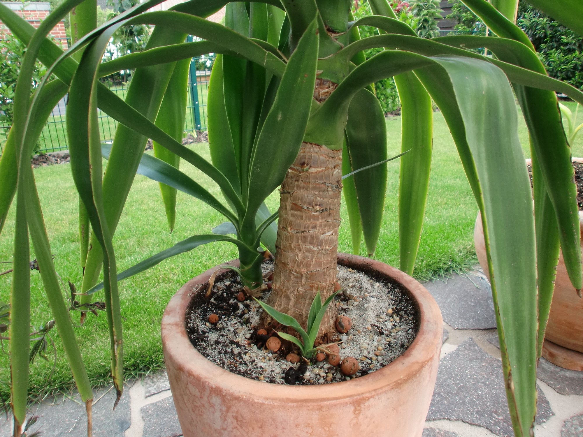 Zwischenzeitlich sind die Stämme der Yuccas quasi explodiert - finde ich zumindest . Eine hat schon den Stammdurchmesser der Mutterpflanze erreicht. Die unteren (alten) Blätter musste ich letzten Jahr entfernen, da sie nur noch mittig am Stamm hingen, weil sie viel zu klein für den "explodierten" Stamm waren. (Es könnte sein, dass ich das sogar zweimal machen musste - weiß nicht mehr genau.)