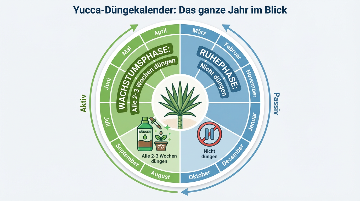 Das richtige Timing ist entscheidend. Der Lebenszyklus der Yucca ist in eine aktive Wachstumsphase und eine Ruhephase unterteilt.