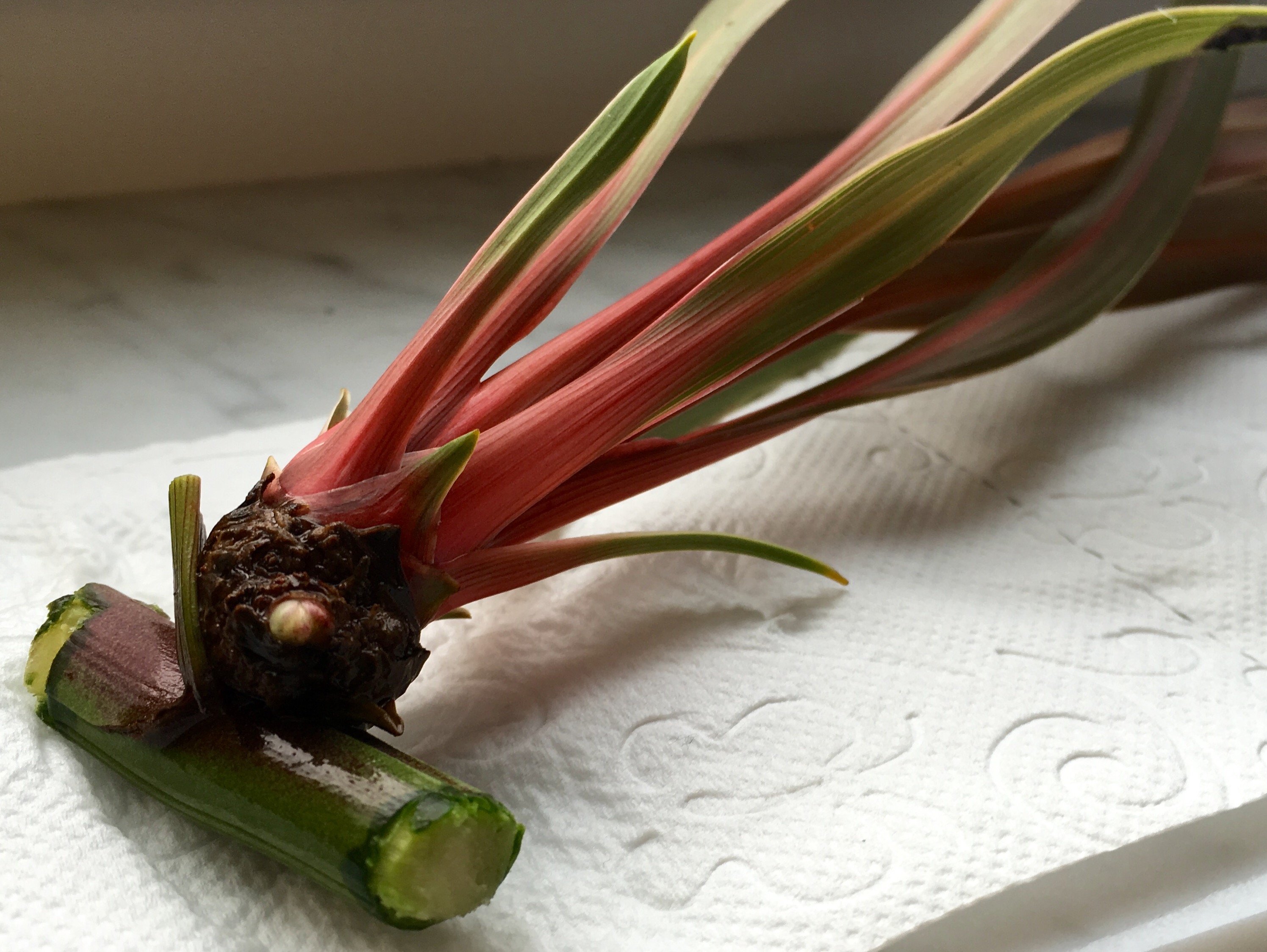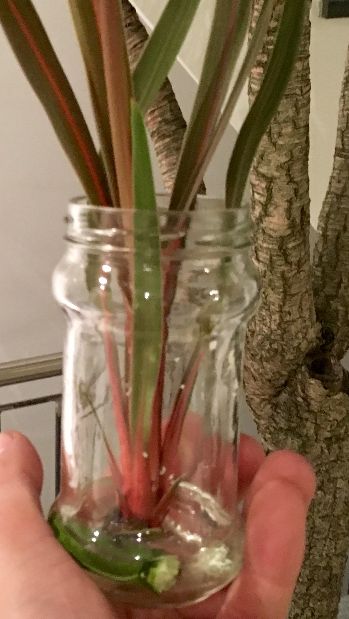 Das Stück 'Blütenstand-Stengel' würde ich aber entfernen, bevor ich den Steckling nach Bewurzelung in Substrat einpflanze. Evtl. gibt es eine 'Sollbruchstelle', ansonsten :scharfer Schnitt, evtl. etwas Holzkohlepulver oder Zimt zur Desinfektion über die Schnittstelle streuen.