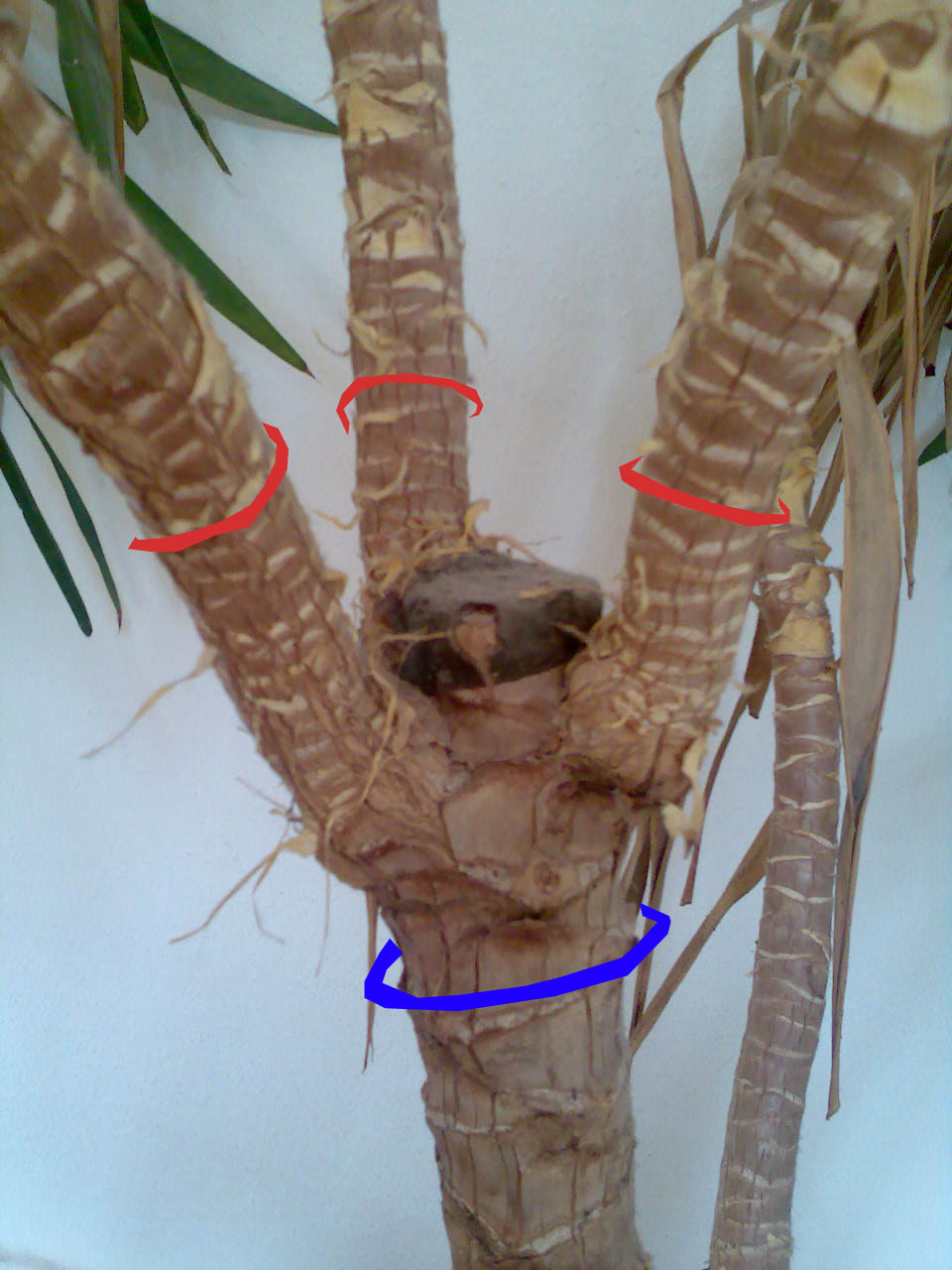 Habe diesen Tip schon mal gegeben (allerdings für einen Drachenbaum / habe es aber auch schon bei Yukkas gemacht) - finde aber den Threat im Moment nicht, da es schon etwas länger her ist. Aber die Zeichnung habe ich noch gefunden.