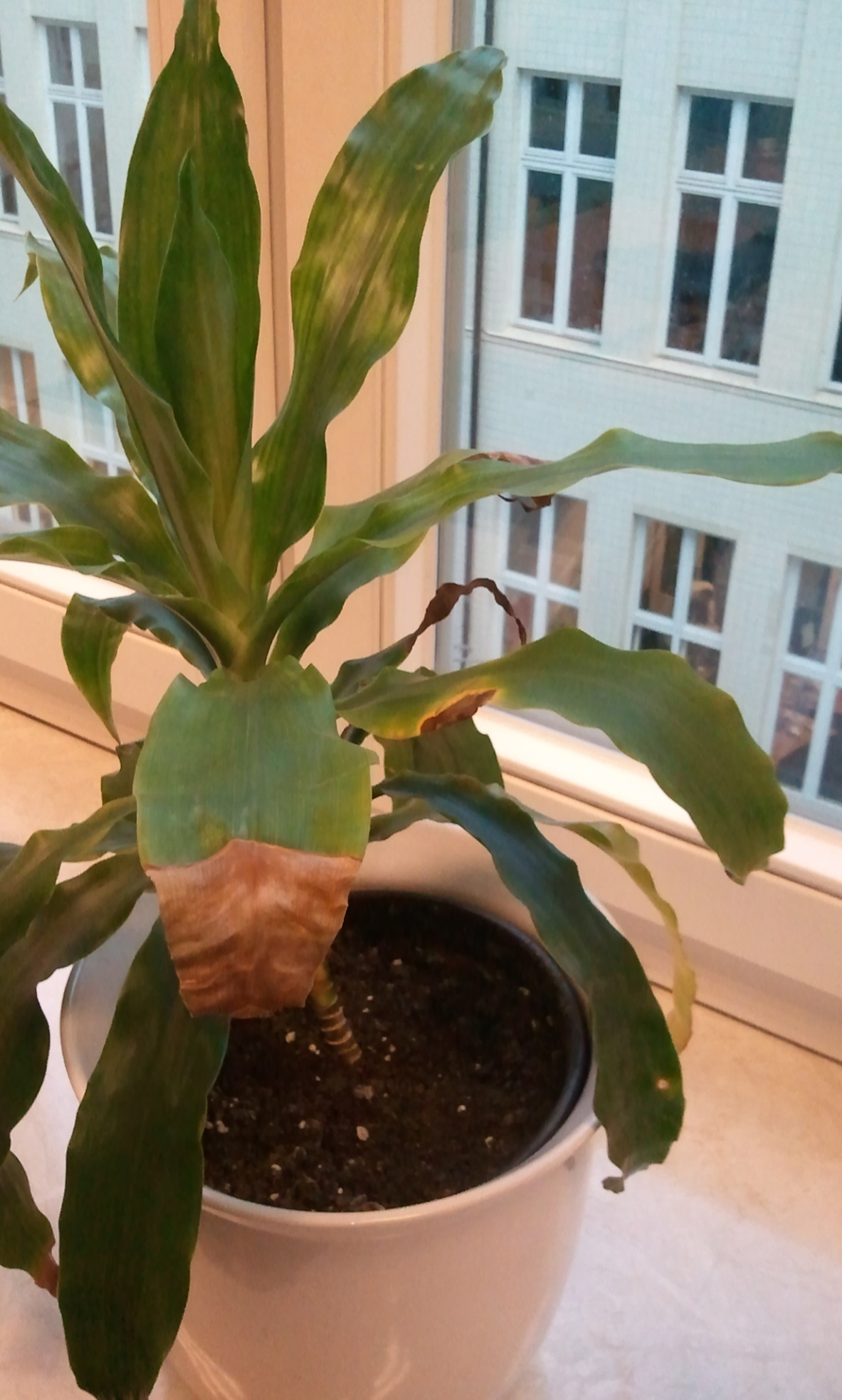 Selbst mit normalen Düngergaben wird sie zwar mehrere Blätter am leben erghalten aber auch ältere Blätter absterben lassen.