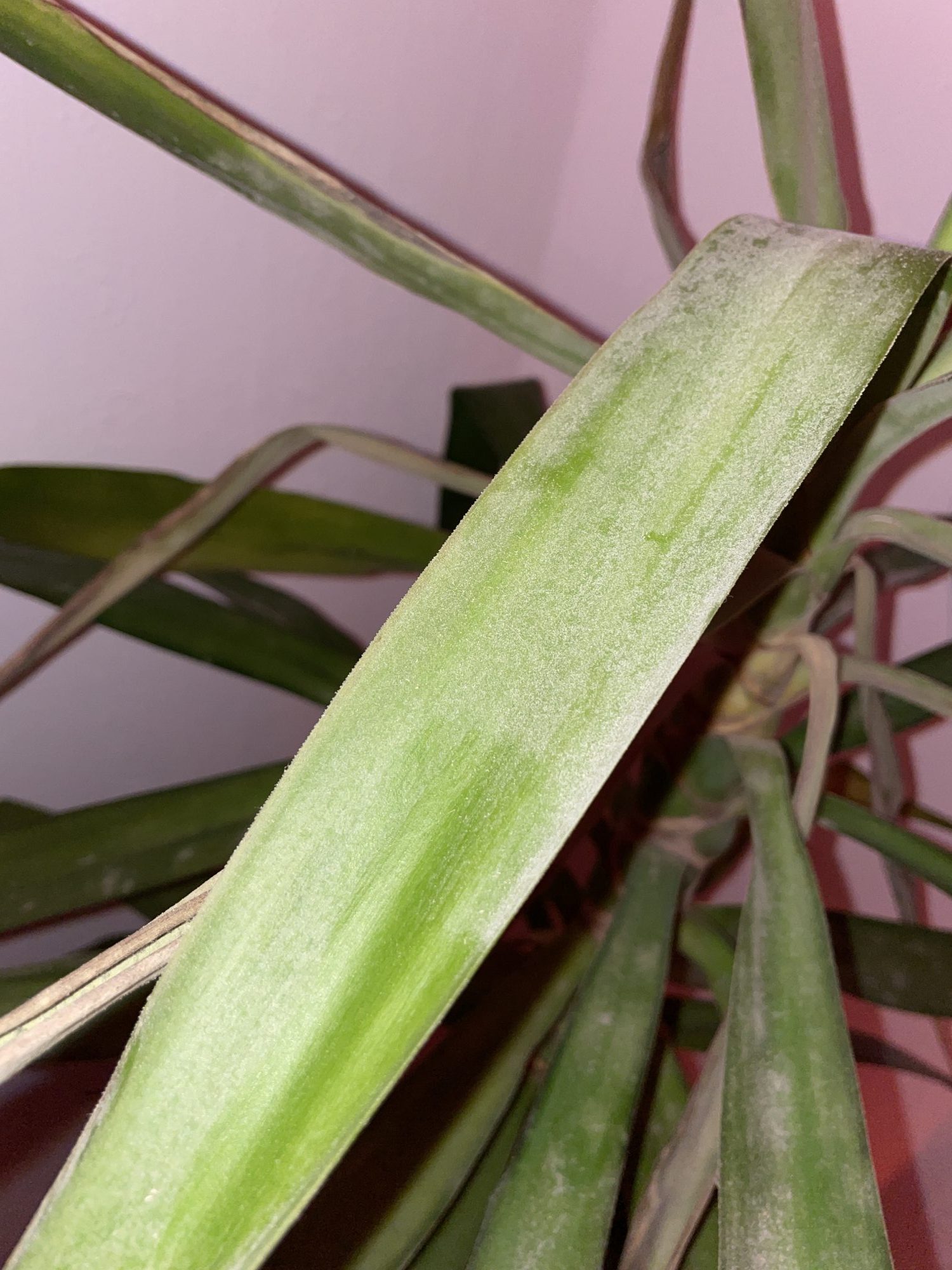 Meiner Yucca geht’s wirklich schlecht, ich habe einen weißen Belag und die Blätter werden braun/Grau und sterben ab.