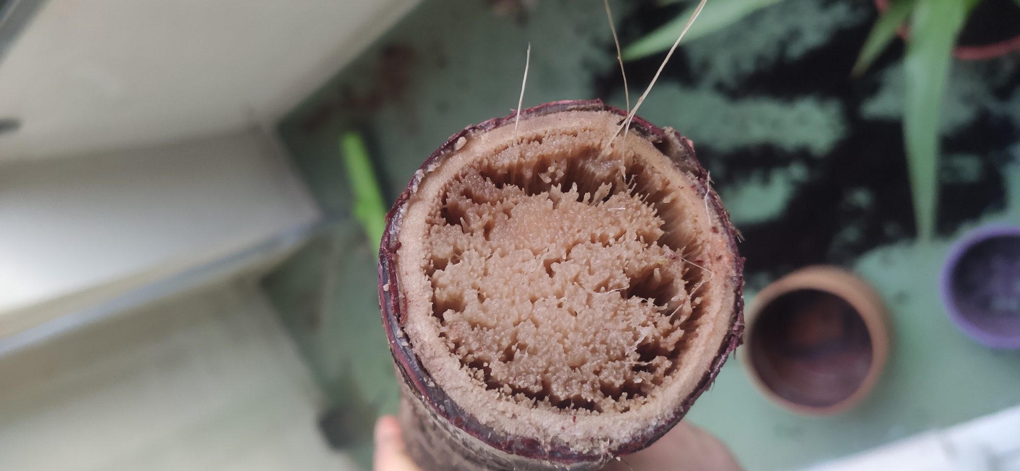 ich habe festgestellt, dass der untere Teil des Stamms meiner Yucca matschig ist. Daher habe ich die Pflanze ausgegraben und die Wurzeln gereinigt. Diese sehen meiner Meinung nach nicht faulig aus. Anschließend habe ich den Stamm so geteilt, dass der Schnitt großzügig oberhalb des matschigen Teils ist. Nach dem Schneiden fühlt sich das obere Stammstück allerdings auch weicher an. Außen ist es fest, aber innen weich und anscheinend auch teilweise hohl. Der Geruch ist leicht unangenehm.