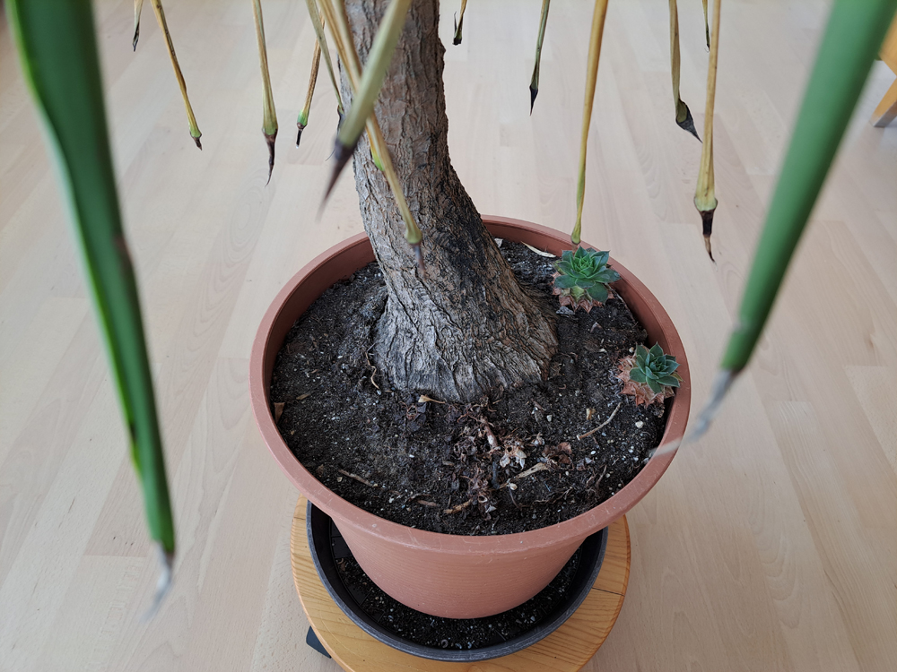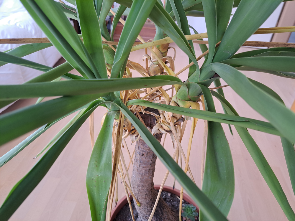 neben meiner Phalaenopsis (siehe separaten Beitrag) hat auch meine Yukka-Palme offenbar ein paar Schmerzen. Auch dieses gute Stück ist schon lange bei mir und war eigentlich stets in gutem Zustand. Seit geschätzt 4 Wochen macht sie mir allerdings Sorge.