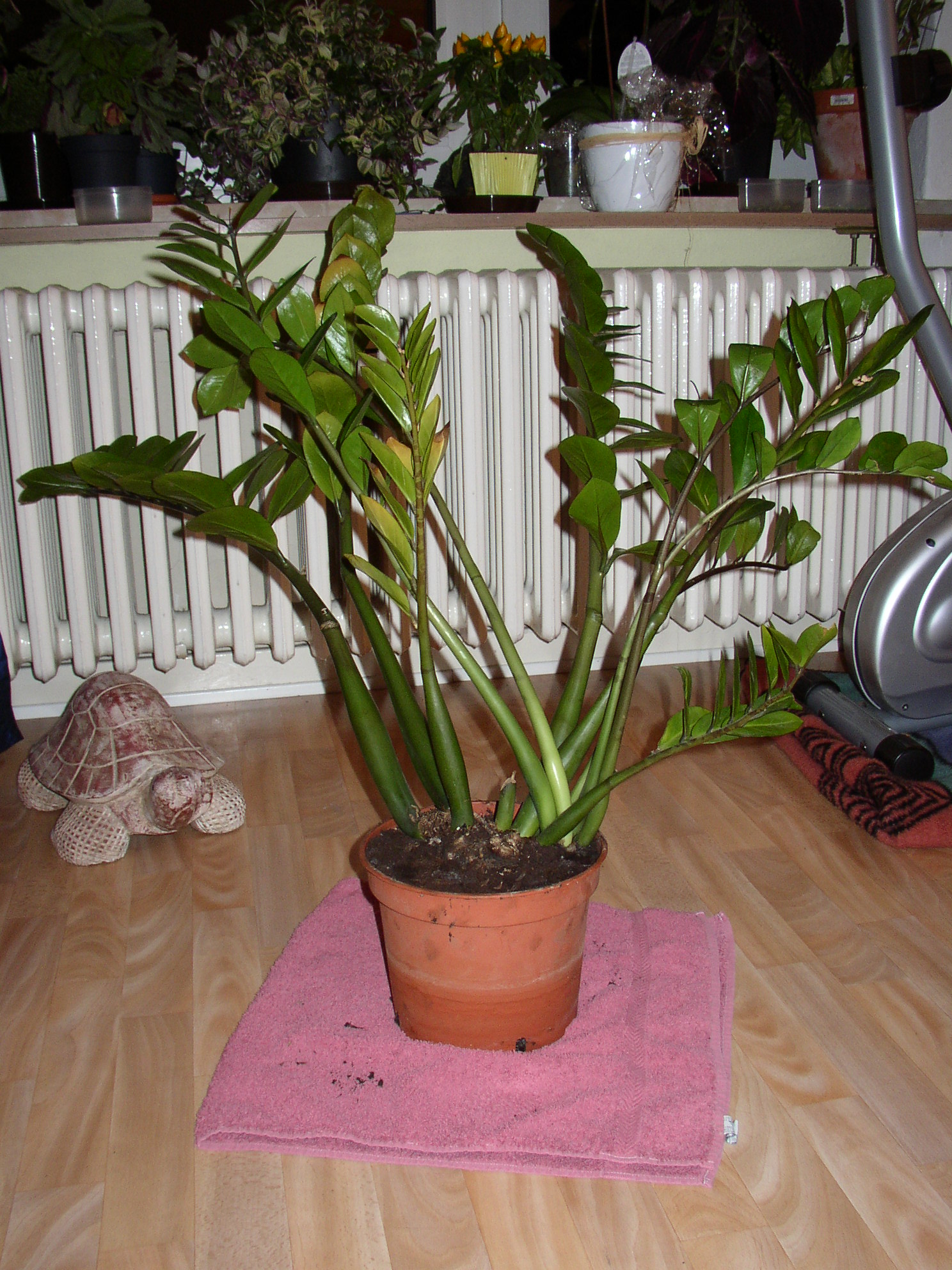 Bei der Zami ist manchmal zu viel Pflege zu viel des Guten. Sie sind eigentlich ganz genügsame Pflanzen. Sie brauchen wenig Wasser (besser wenig als zu viel...meistens werden sie eher ertränkt als das sie verdursten). Sie können sowohl an einem hellen Plätzchen leben...aber im Halbschatten bzw. Schatten kommen sie auch noch klar. Je heller sie stehen, um so schneller wachsen sie...aber dafür verlieren sie auch ihr sattes Grün...die Blätter werden heller.