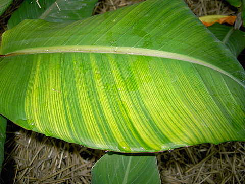 Hier ein Blatt einer Musa Balbisiana das sich derzeit so schön verfärbt.