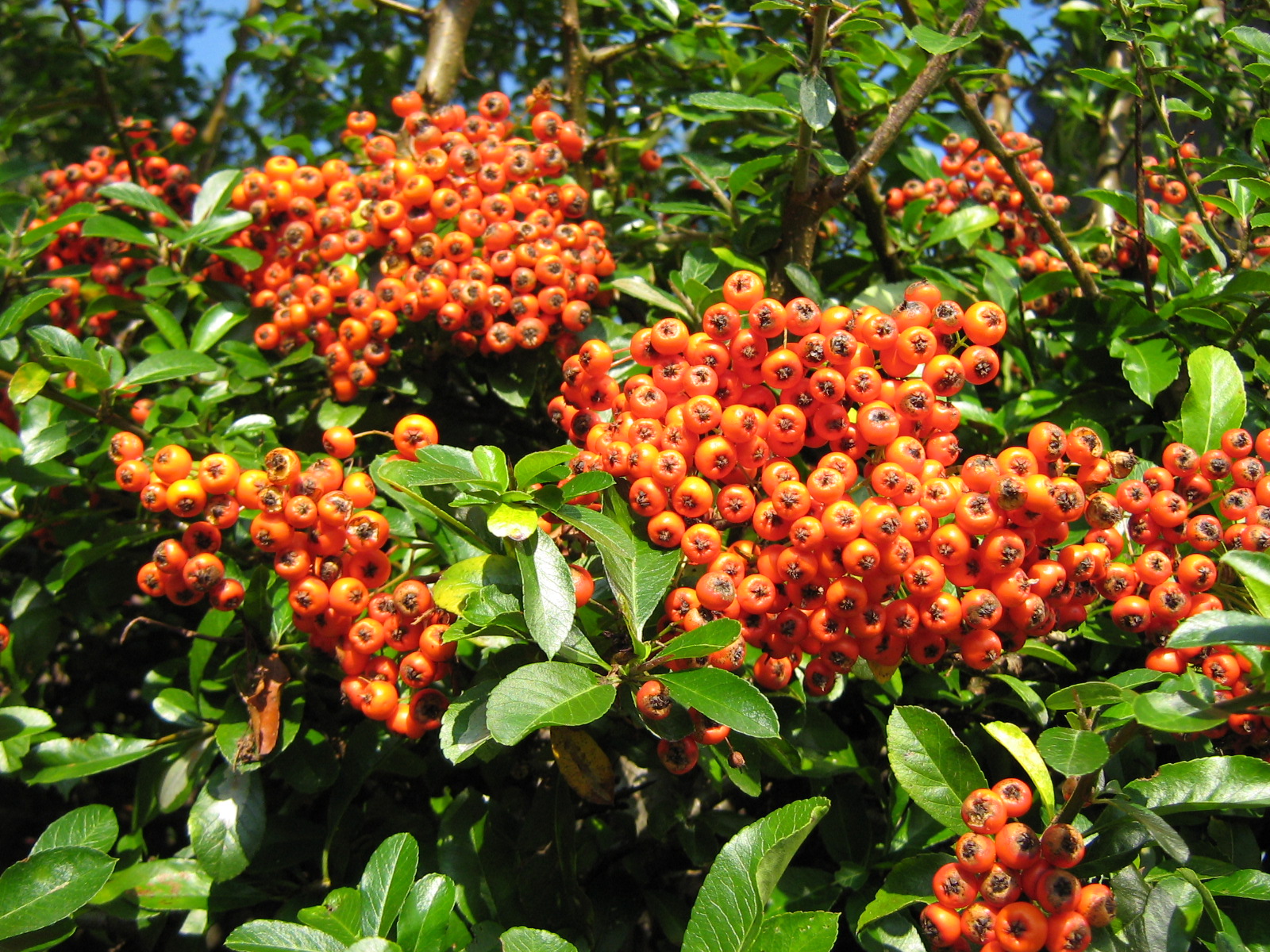 Noch ist der Feuerdorn voll mit Früchten. Aber sobald es kälter wird, fallen die Vögel in Scharen ein und räumen gründlich auf.