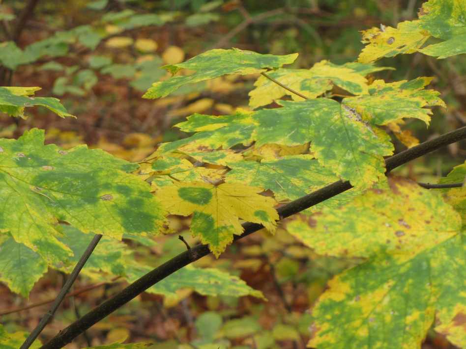 In Köln im Stadtwald habe ich diese merkwürdig gefärbten Ahornblätter gefunden. Die grünen Stellen sind mir ganz rätselhaft.