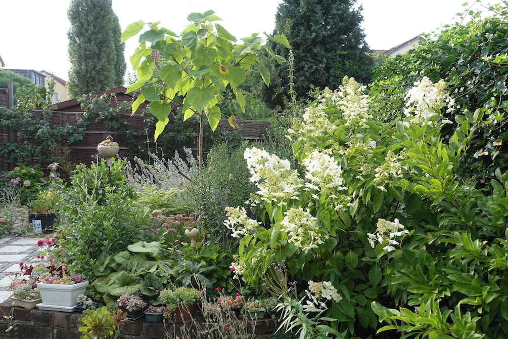Ich habe einen kleinen Schattengarten mit Aussicht nach Norden.