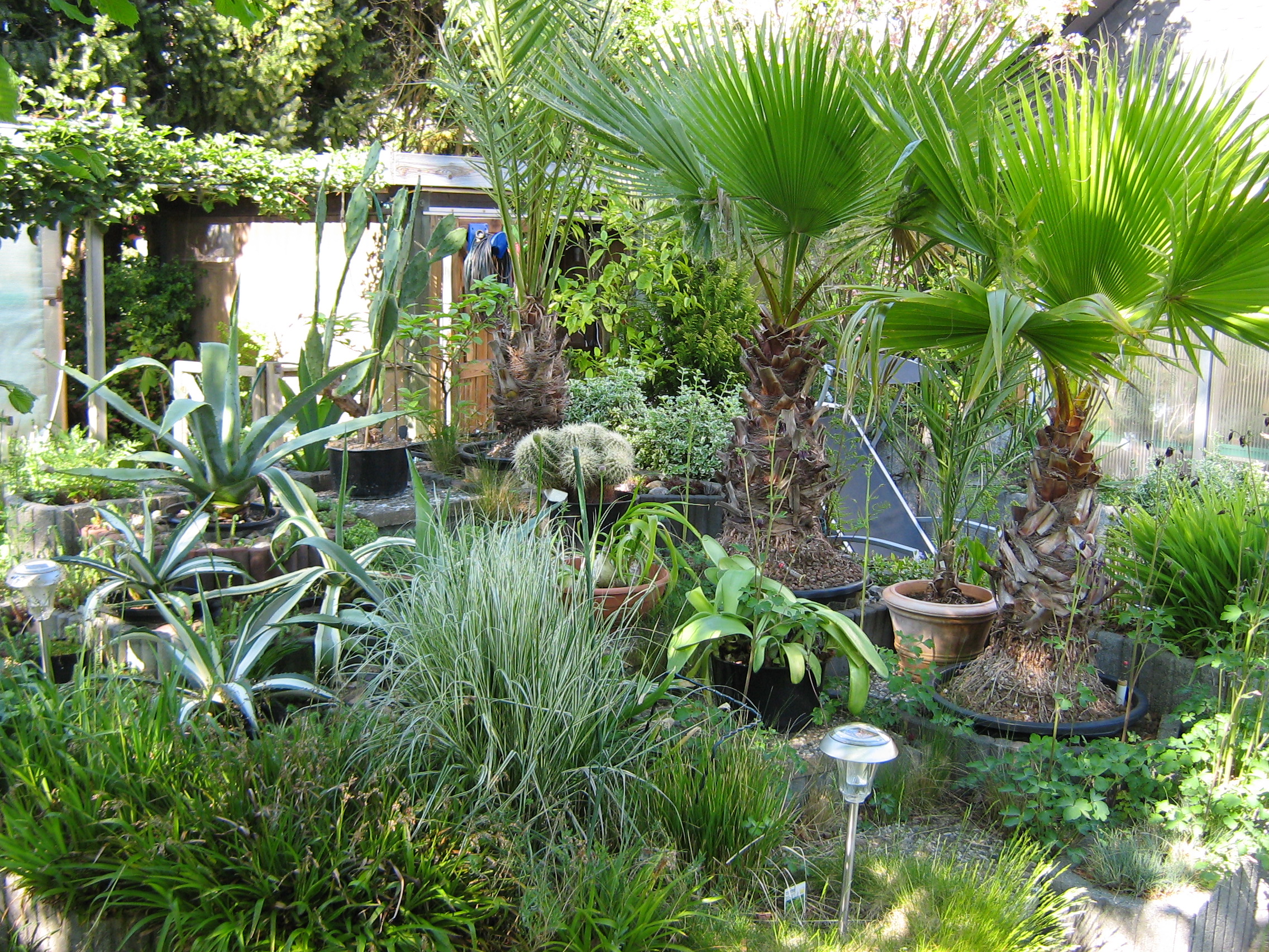 Na gut, dann mal ein paar Bilder eines Gartens im "hohen Norden", auch wenn einiges eher an südlichere Gegenden erinnert. Aber ein wenig exotisches Flair muss halt sein.