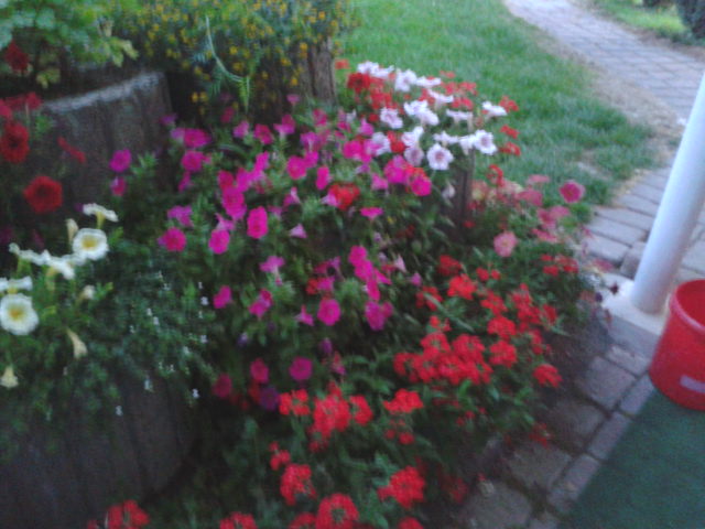 Ich hab ja nur einzelne Beete und keinen "Gesamtgarten", aber hier hab ich mal ein aktuelles Foto von meinem Straßenbeet in Abendstimmung: