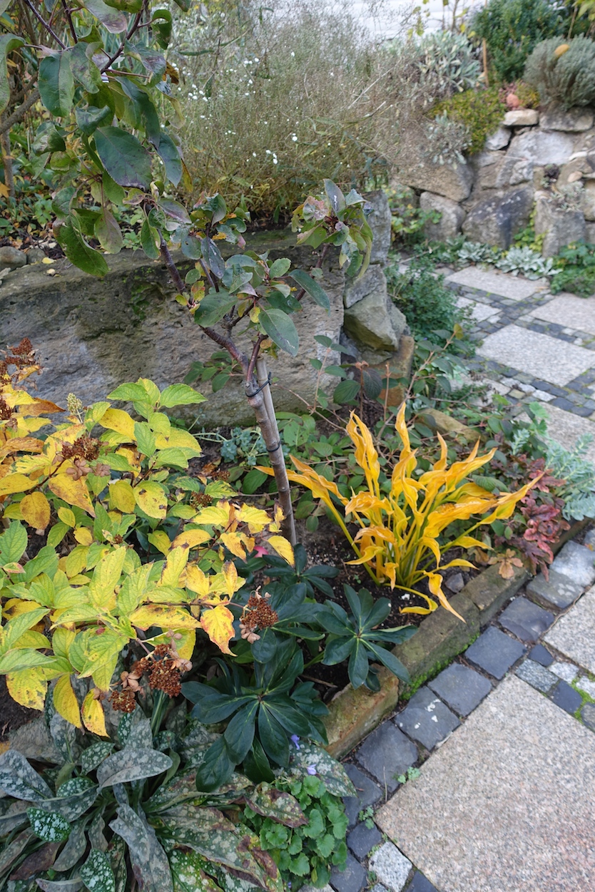 Ich versuche möglichst pflegeleichte Pflanzen zu verwenden und sie dürfen nicht rot oder gelb blühen (mag die Farben nicht so)- obwohl ich jetzt tatsächlich eine gelbe Taglilie ( Stella d'oro) gekauft und eingepflanzt habe .