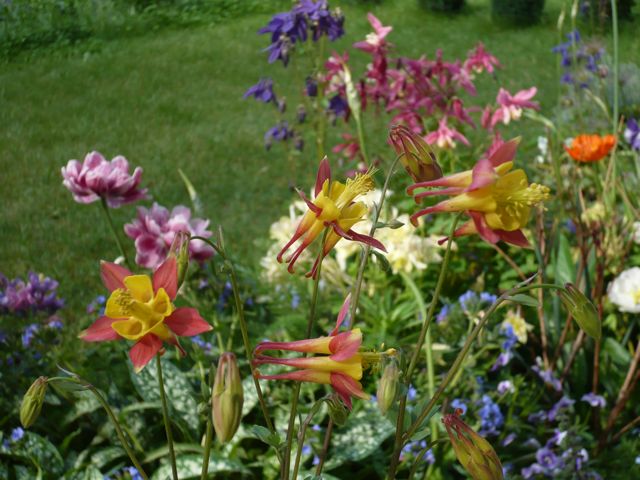 Habe in den Buchsbaumbeeten verschiedene Stauden und Rosen gepflanzt,wie z.B.Friesia,Königin v.Dänemark,Westerland,Scheewittchen,Mannheim,Raubritter und und..,natürlich auch noch Stauden wie Pfingstrosen,Lilien,Glockenblumen,Lavendel usw...