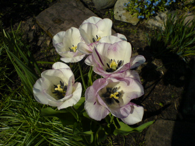 Da aber jede der drei Zwiebelpflanzen zweifärbige Blütenzeichnungen besitzt wirkt der kontrast nicht so heftig.