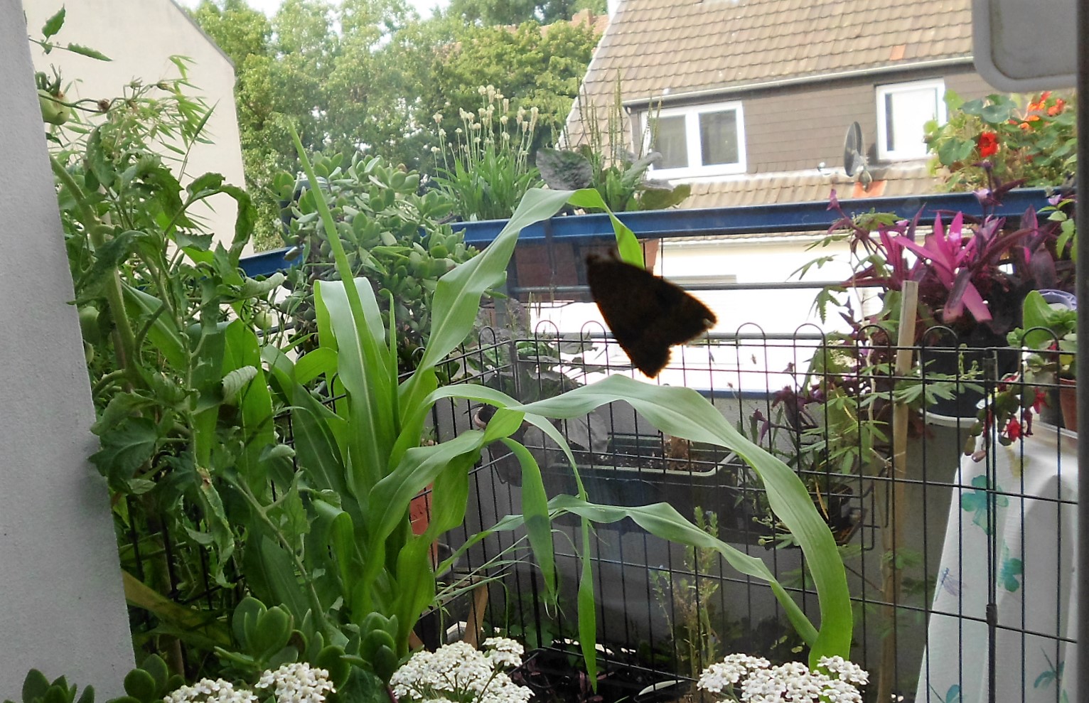 Für einen Rundgang ist es jetzt wo die Pflanzen alle gewachsen sind natürlich zu eng auf Balkonien, sorry.