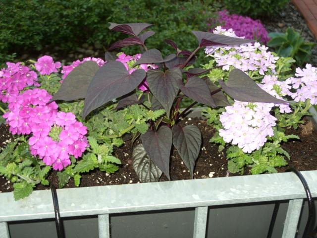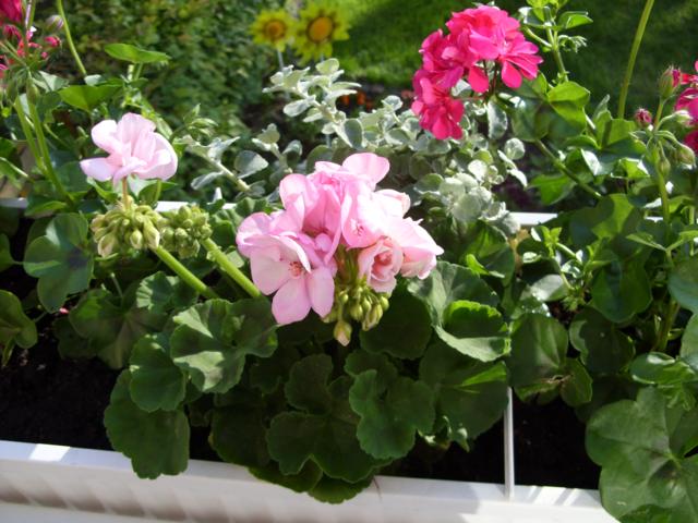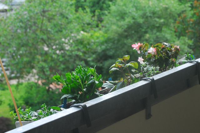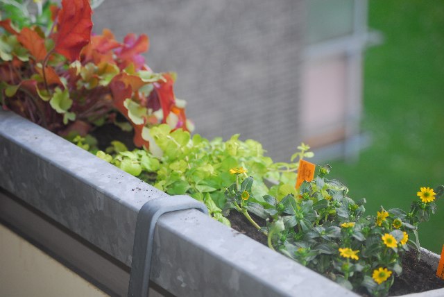 die Tomaten im Balkonkasten müßten etwas tiefer eingesetzt werden. Sie sind aber schön gewachsen.