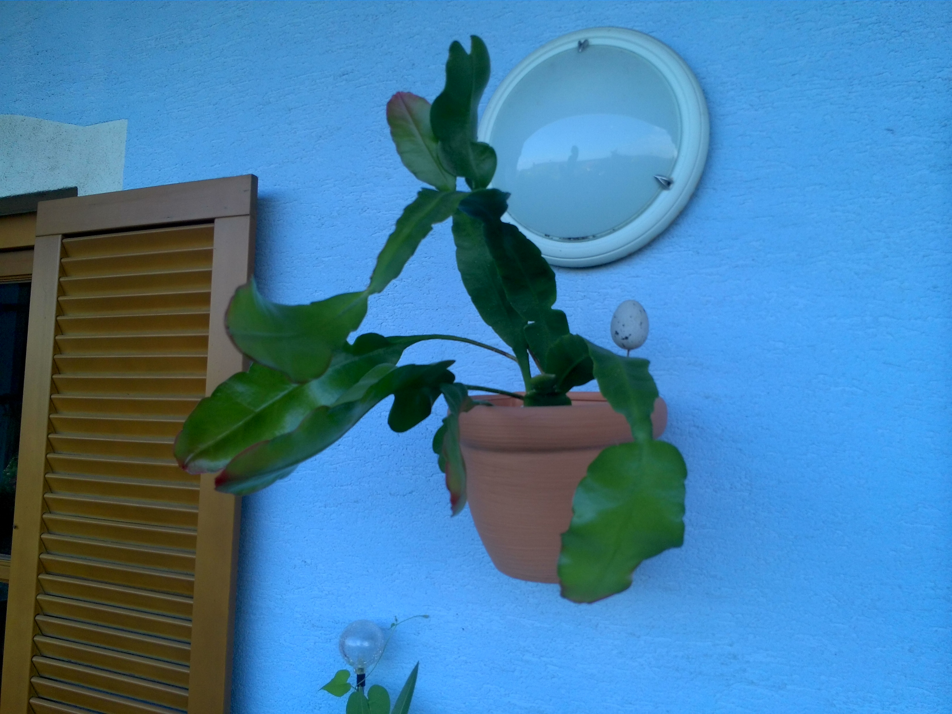 Im März (eher Ende März) habe ich die Blumenzwiebel dann in das lilafarbene Gefäss getopft und die Pflanze wächst ja auch, nur es bilden sich überhaupt keine Blüten oder Knospen aber reichlich grüne Blättchen.
