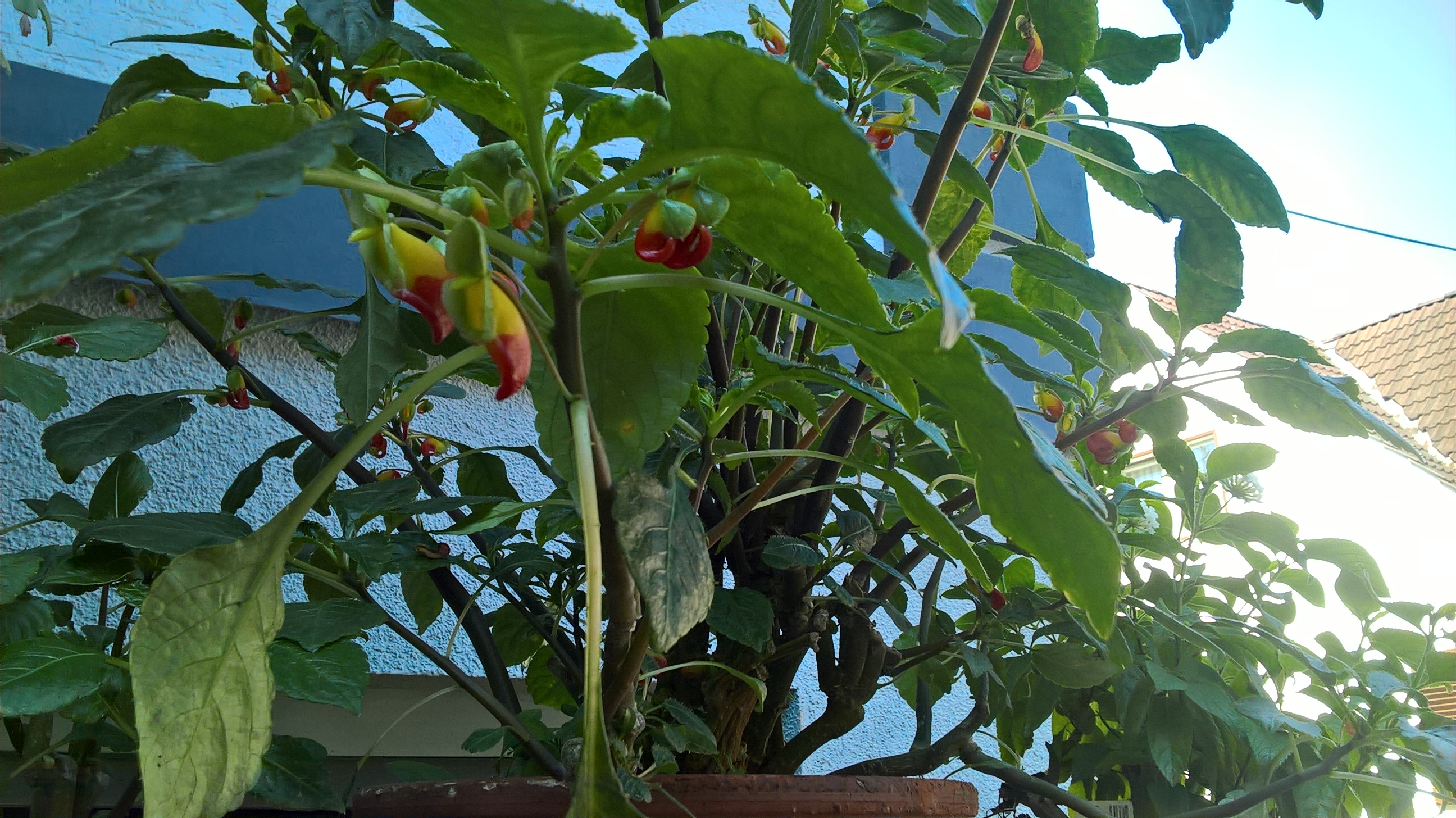 Das war mal so eine Abstell-Ecke (Mülltonnen, Schubkarre, Stapel mit Baustoffen...) bis ich die Ecke als ideal für Kübelpflanzen befand. Schön windgeschützt und sonnig eben!