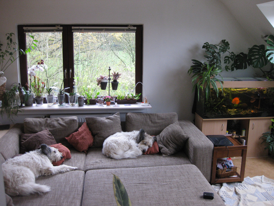 Ich habe mir einfach schmale, lange Glasplatten besorgt (kosten nicht die Welt und kann man passend zuschneiden lassen...)und darunter bzw.dazwischen große Kalksandsteine gestellt (quasi als Abstandhalter zwischen den Glasböden). Und schwupps: 2 Etagen mehr für Grünzeug!