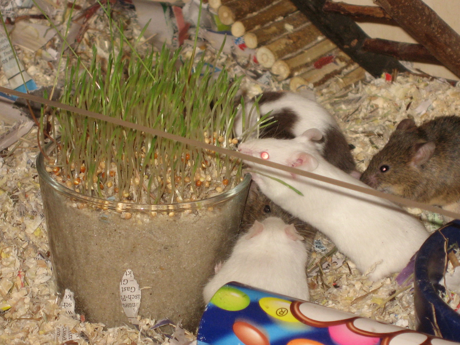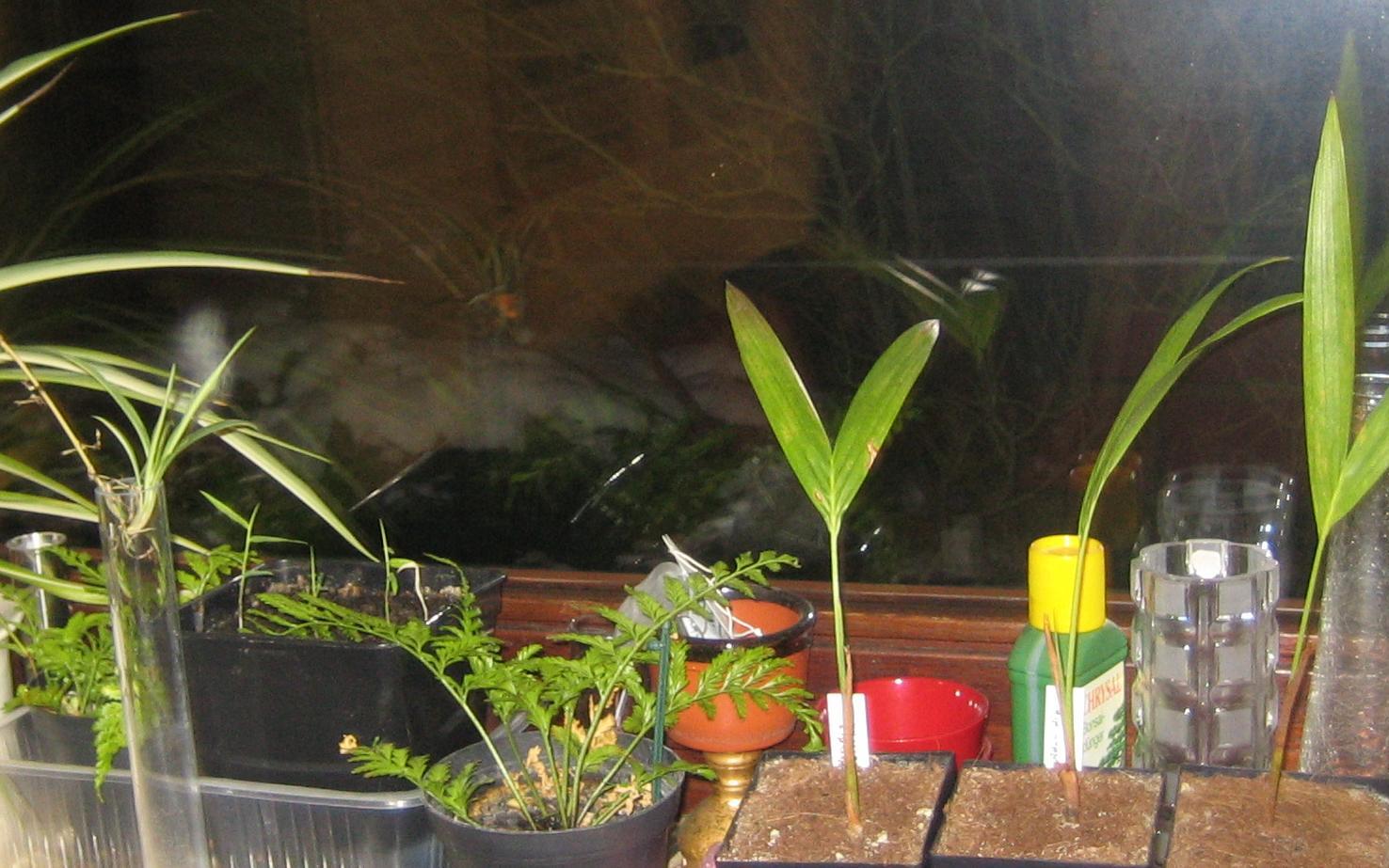 die ersten beiden bilder sind das rechte fensterbrett im wozi, das dritte bild schlafzi. das hirse hab ich für meine mausels angebaut, denen gefällts. die hirse stell ich nicht aufs fensterbrett, weil ich nicht möchte, daß topfbewohner ins mäuseheim einziehen.