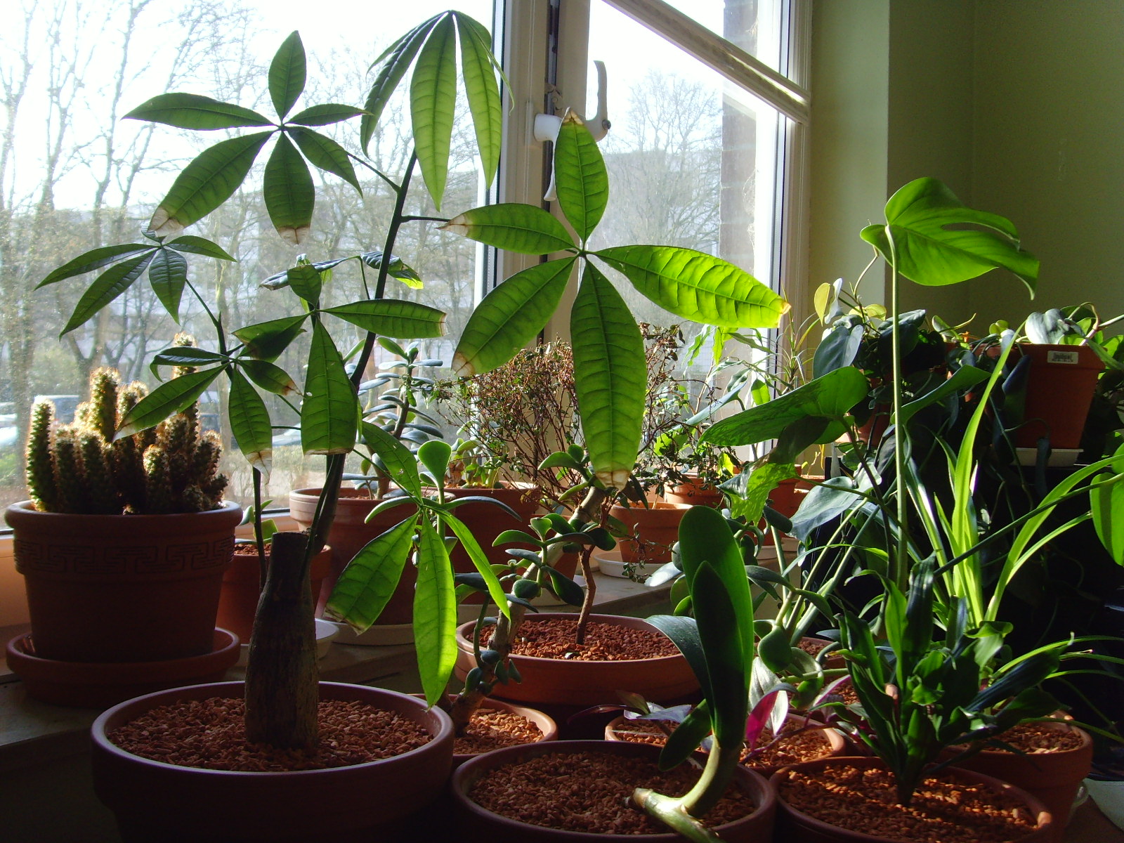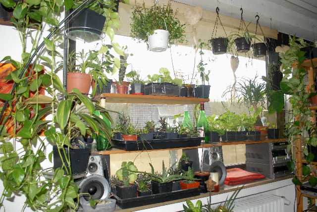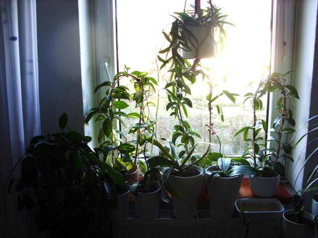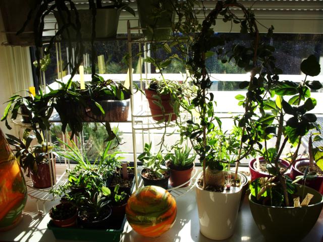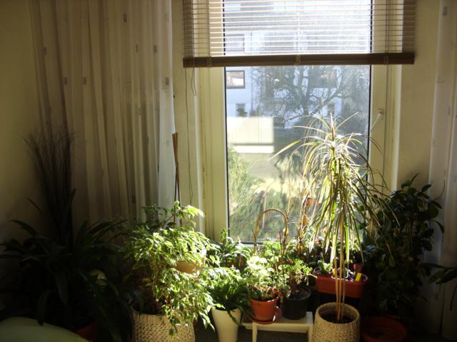 Es stehen alle Pflanzen so, dass sie Licht bekommen, nur die am rechten Fenster bekommen glaube ich zu wenig ab.