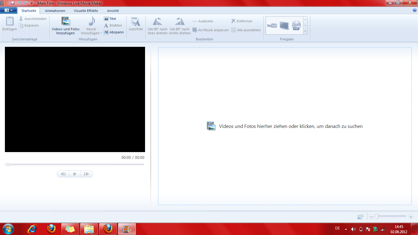 Ist dies getan, können die Bilder auch schon importiert werden, zur schnelleren Auswahl öffnet man mit Strg+I das Importfenster und wählt im richtigen Ordner mit Strg+A alle Fotos aus. Sind alle Bilder im Storyboard, werden sie automatisch richtig angeordnet und der Film kann testweise angeschaut werden.