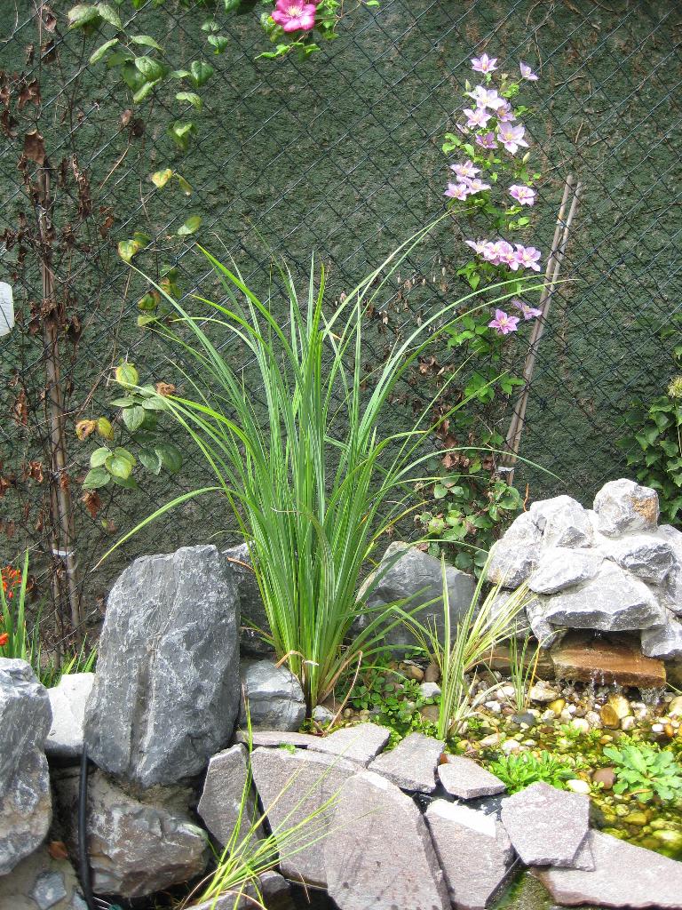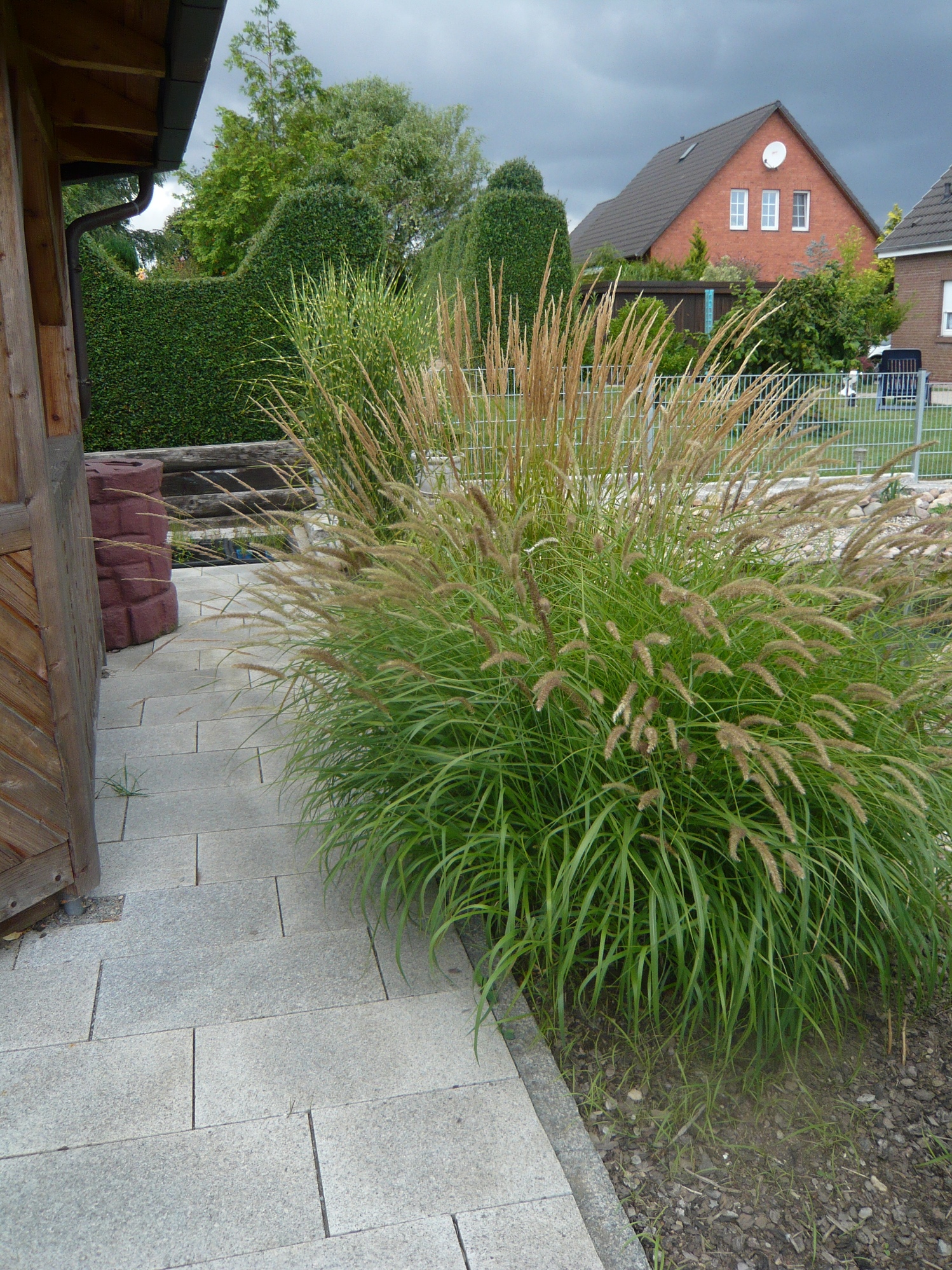 Wir haben ein Zebragras(wird immer riesiger ) und ich glaube zweimal Chinaschilf....war ein Geschenk von jemandem,der sie nicht mehr haben wollte...eins bleibt allerdings immer viel niedriger als das andere....Es versteckt sich auf dem Bild leider hinter dem im Vordergrund gepflanztem Buxus--hab ich grad gesehen...LG