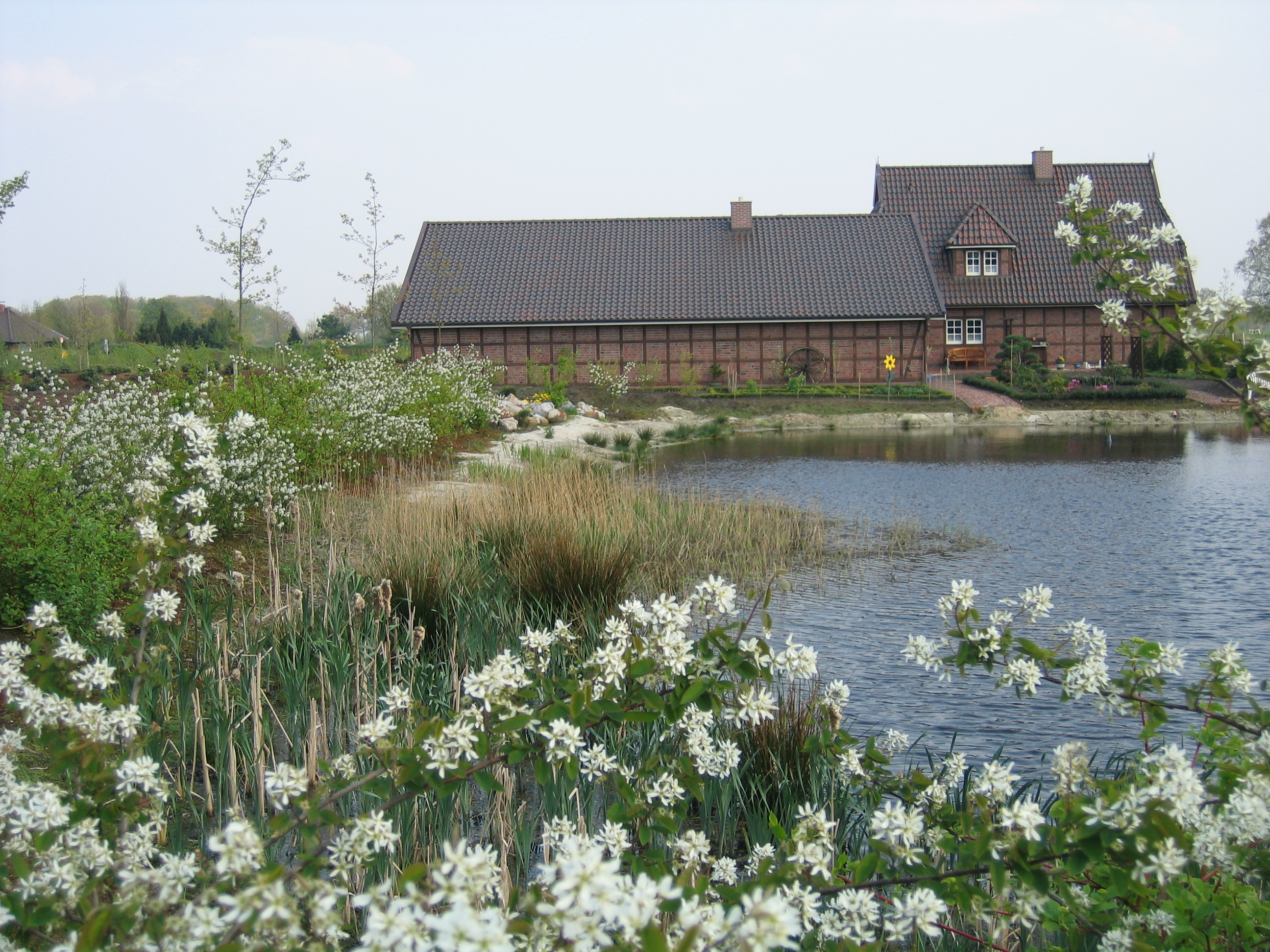hier ein Bild von Amelanchier lamarckii an unserem Teich im Frühjahr 2007.