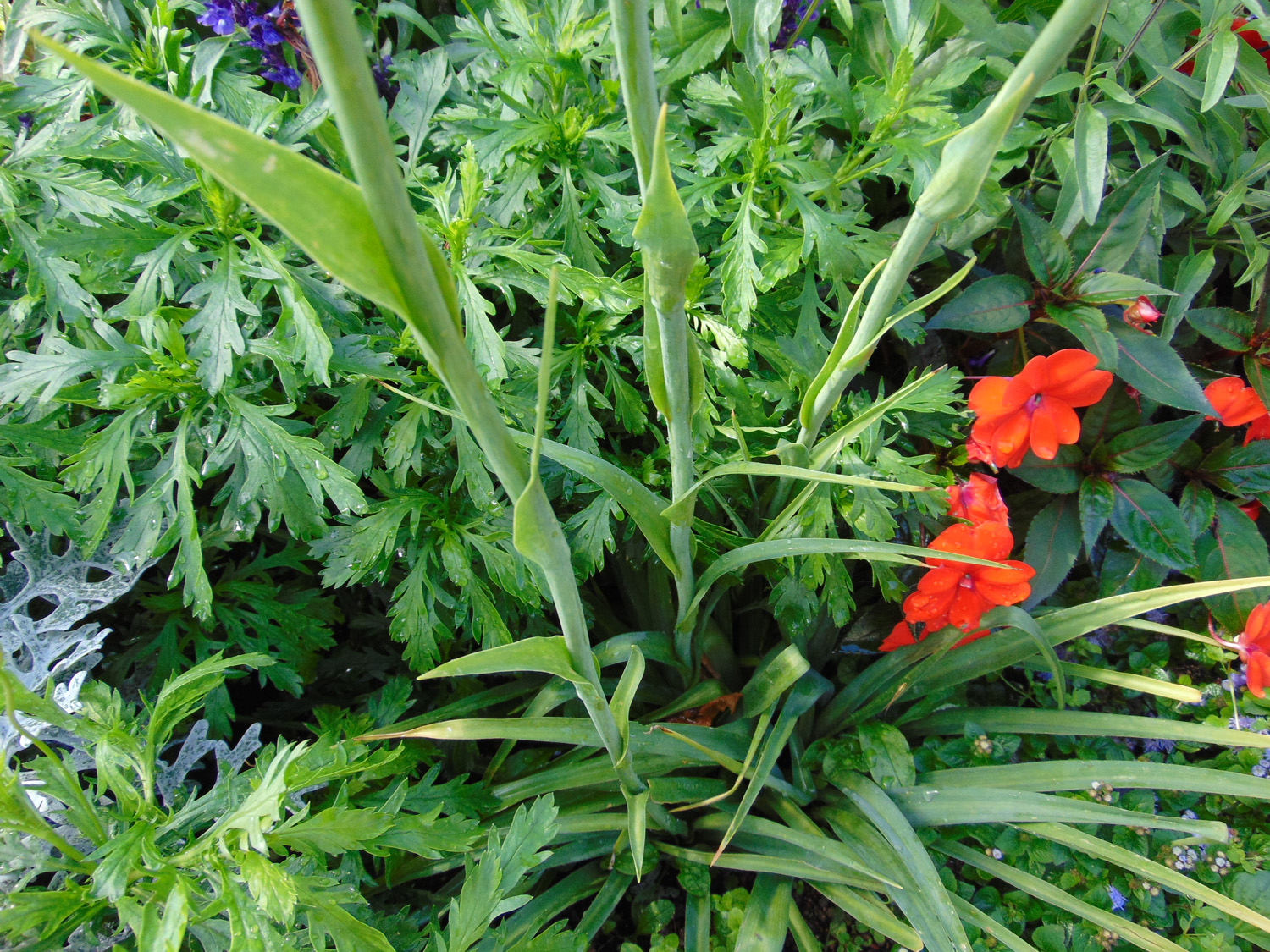 Kennt jemand die hier abgebildete Zierpflanze, die ich kürzlich auf einer Blumenrabatte in ihrer weißen Pracht bestaunt habe? Auf dem dritten Bild sind ihre Blätter links neben der rotblühenden Impatiens zu sehen.