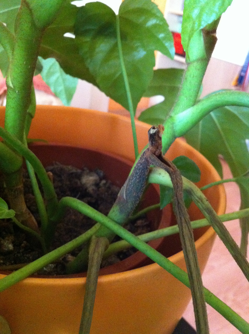Das am stamm kann ich mit dem Finger wegmachen... dann ist das auch saftig Grün. Und wo ich die neuen Blätter kommen ist das auch so braun und kommt nicht ...???