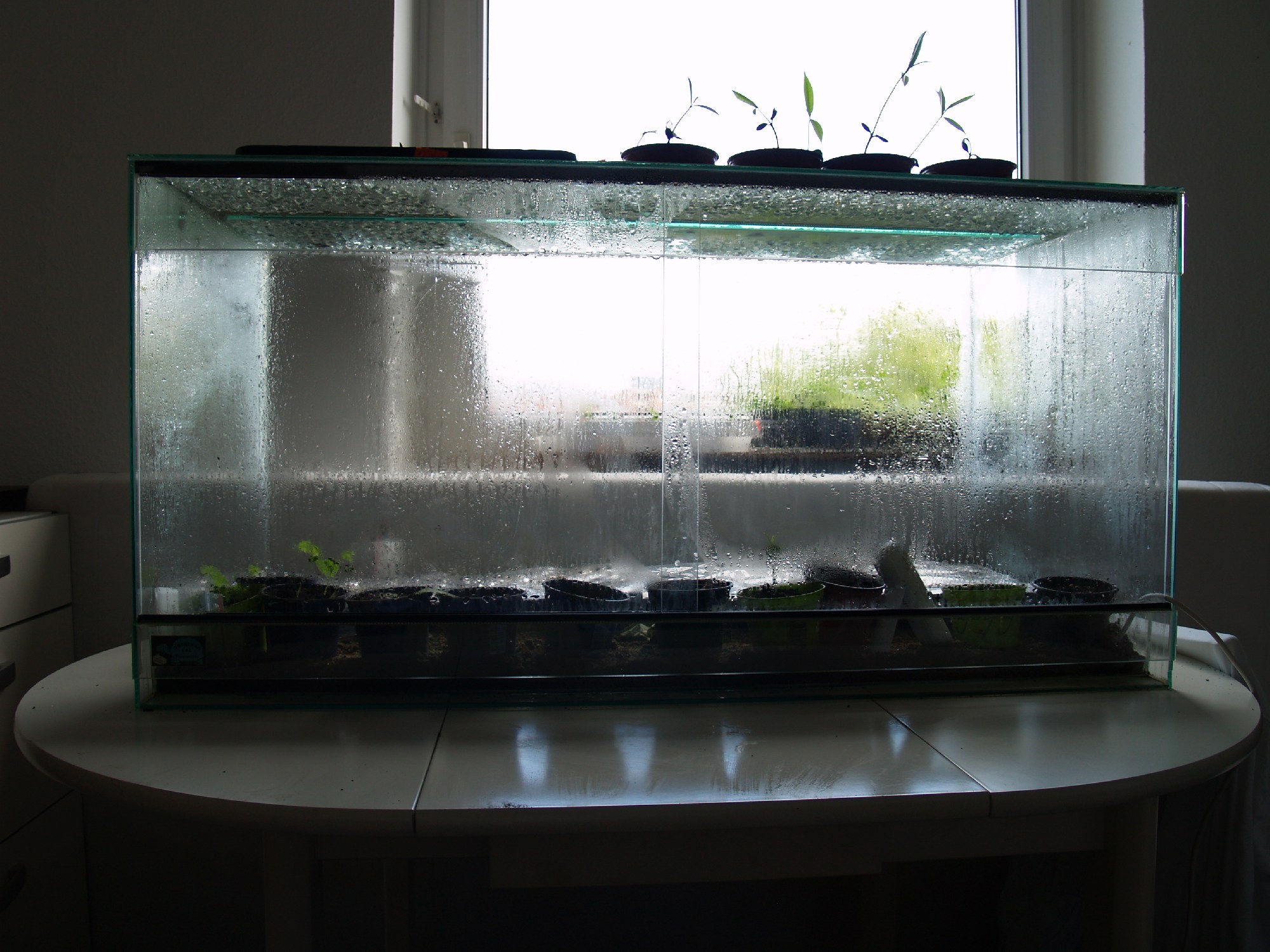 Da ich nun gehört hab, dass die Pflanzen eine hohe Luftfeuchtigkeit brauchen habe ich ihnen mal zwei kleine Gewächshäuschen gebaut ^^