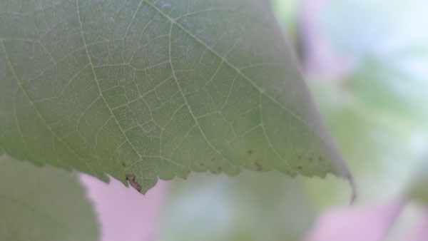d) die Linde hat viele, auch grosse, Blätter verloren. Es wachsen viele Triebe nach - überwiegend kleinere Blätter.