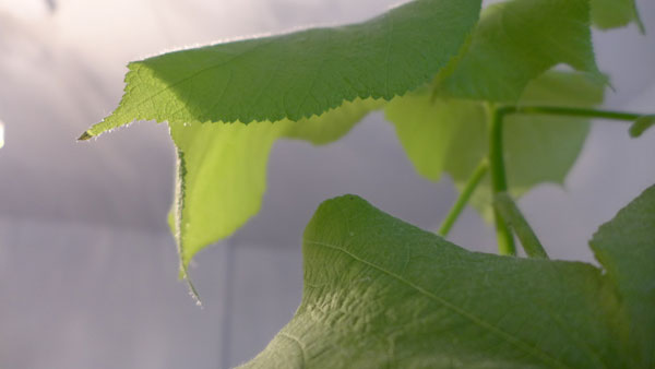 a) Blätter wirken z.T. kraftlos und einzelne kräuseln sich nach innen
