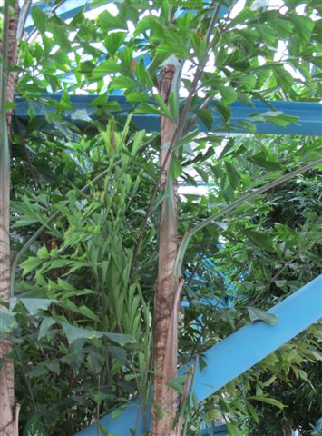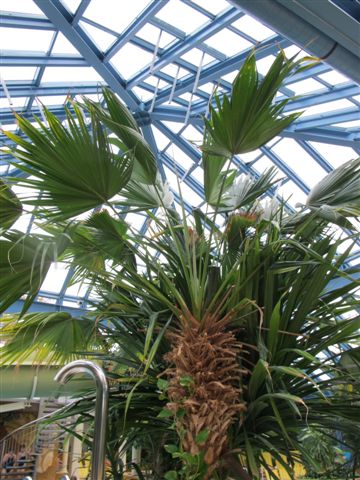 ich komme mal wieder mit Fotos von vier stattlichen, domestizierten Pflanzen zu Euch, die ich in einem Thermalbad angetroffen habe. Der Stamm der ersten Pflanze ist andeutungsweise auf dem 2. Bild zu sehen, links neben der Pflanze mit den Stelzwurzeln. Ich wäre Euch dankbar, wenn Ihr mir ihre Namen nennen könntet.