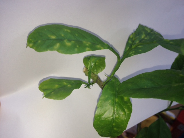 meine Zitrone hat ueber den Winter mit einem starken Befall von Roter Spinne und Schildlaeusen zu kaempfen gehabt. Ich hab daraufhin alle Blaetter und den Stamm mit Seifenlauge abgewaschen, Schilddlaeuse sogut es ging entfernt und sie einige Tage auf den Balkon gestellt bei bis zu -3 oder -4 Grad. Daraufhin hat sie natuerlich alle Blaetter verloren. Ich hab sie grosszuegig zurueckgeschnitten und reingestellt, bisschen gegossen und es kamen schoen viele Blaetter und so 30 Blueten. Alles sah wunderbar aus, bis vor ca 2 WOchen dann die Blaetter hubbelig und gelb wurden - nicht alle. Ich konnte am ganzen Baum aktuell 3 oder 4 Rote Spinnen ausmachen, die ich zerdrueckt hab.