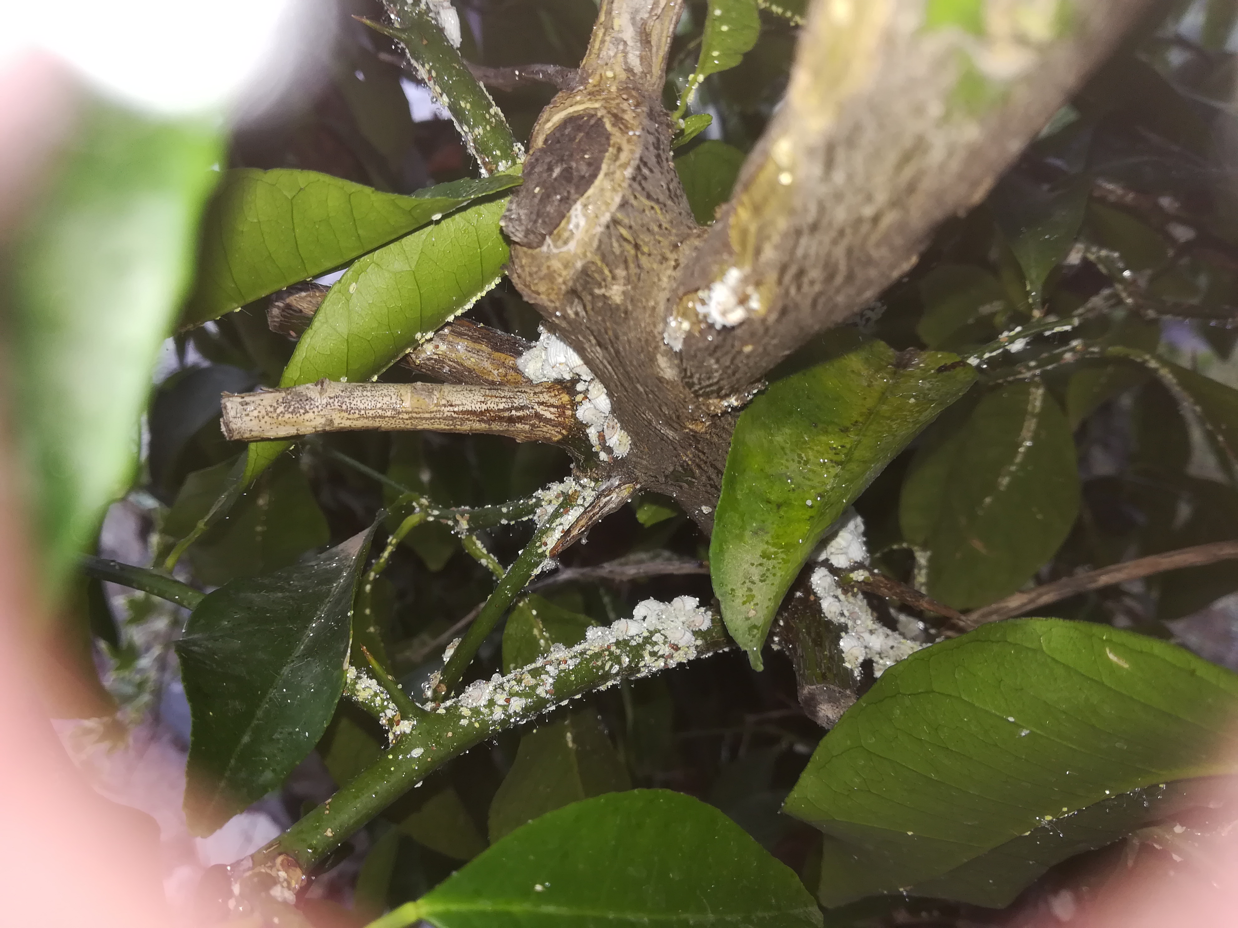 Mein Zitronen- und mein Clementinenbaum hat am Stamm und an 2 Ästen diese weißen "Kristalle".