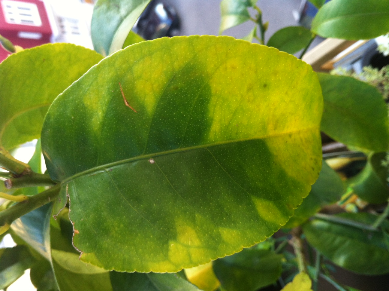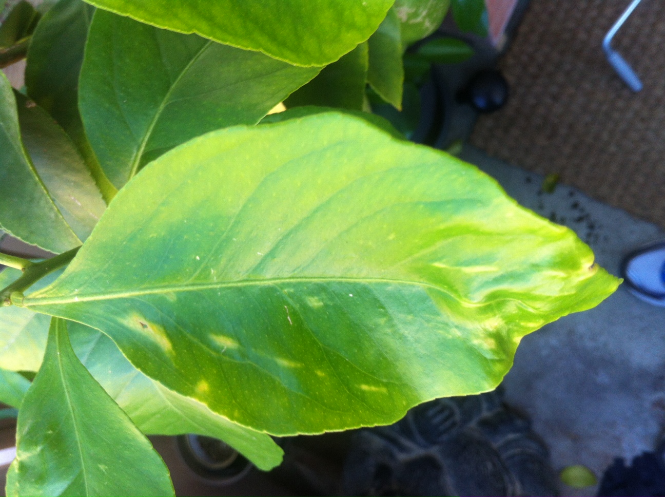 Wasser gibts wenn die Erde langsam trocken wird. Düngen ihn einmal die Woche mit Neudorff zitrus Dünger. Was ich schonmal gelesen habe das es durch zu kalkhaltiges Wasser zu einer Chlorose kommen kann und da nur ein kompletter Wechsel der Erde hilft. Ja in München ist das Wasser sehr kalkhaltig