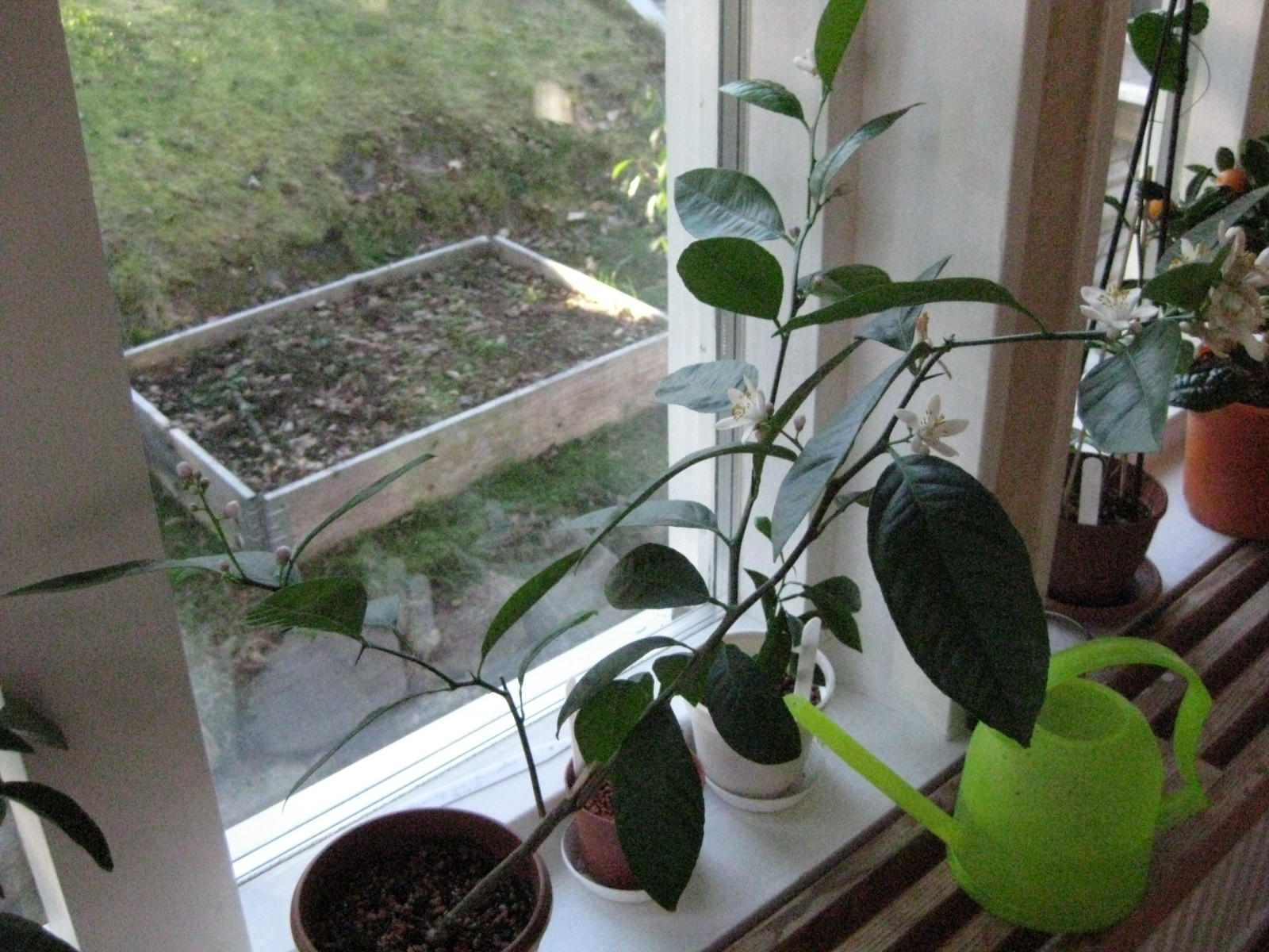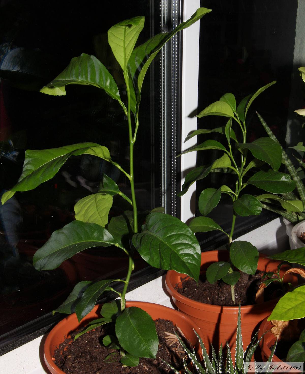 hier mal wieder ein Bild von meinen Zitronenbäumchen. Das größere (das anfangs übrigens immer das kleinere war) ist schon 35 cm hoch, wächst ja wie wild, gesät hab ich sie im März. Und der andere hat sich schon verzweigt.