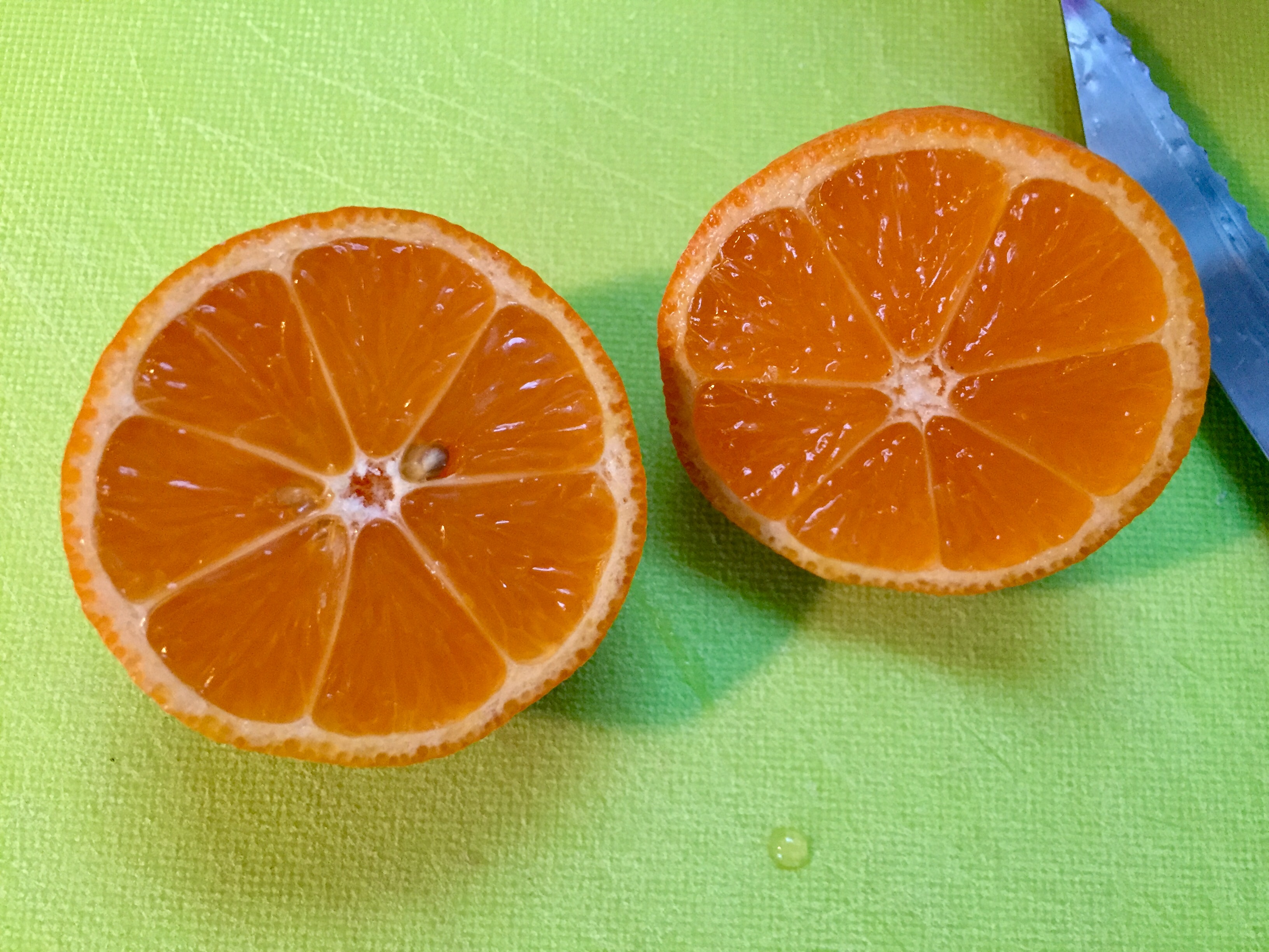 Ich würde sagen, das passt ganz gut zu meinen Eindrücken! Wenn du bei der nächsten Frucht ein Foto von einer quer statt längs halbierten Frucht (sodass man die Anzahl Fruchtsegmente sehen kann) machen könntest, könnte mich das in meiner Meinung bezüglich Rangpur noch bestärken…