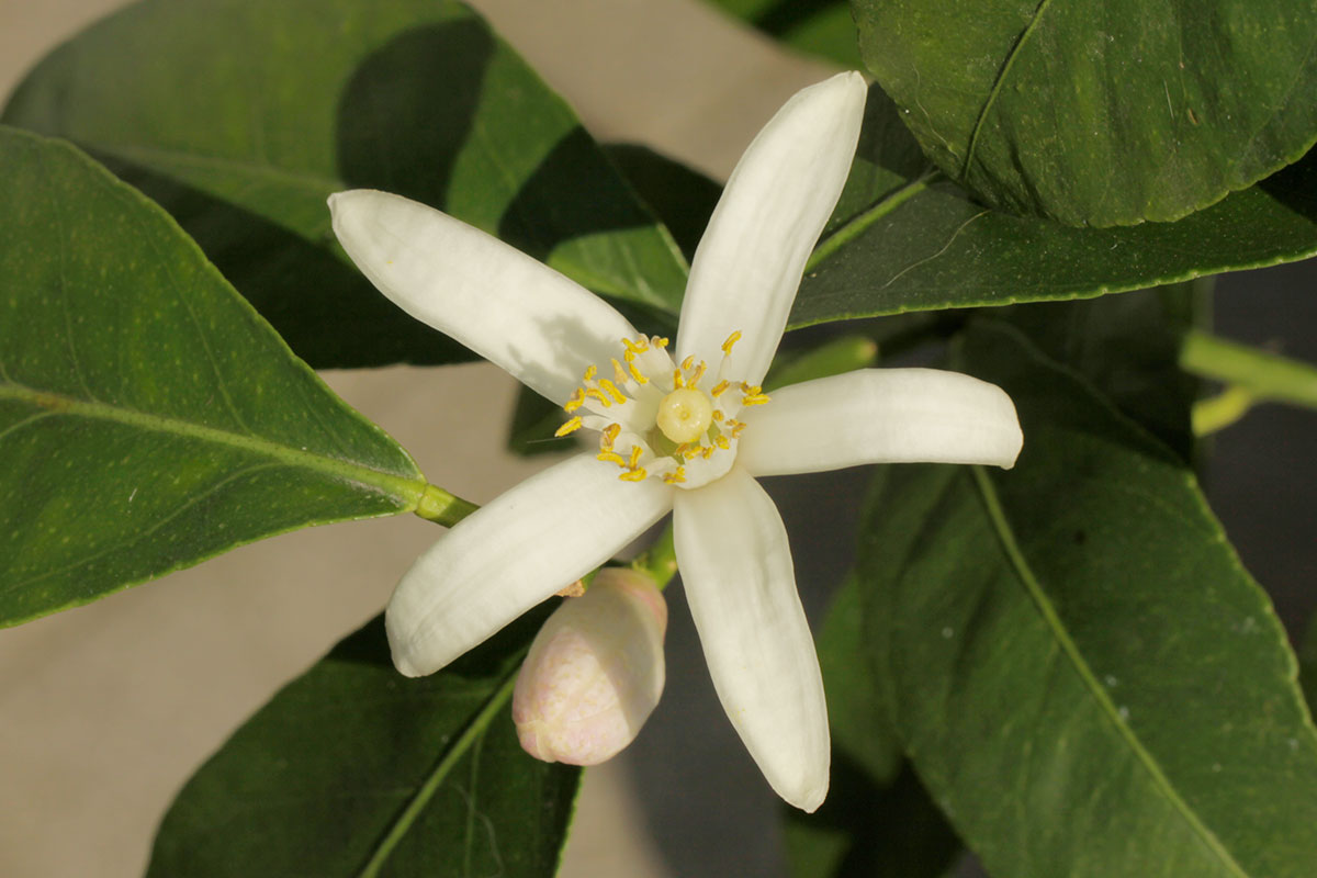 Unterdessen erfreuen die grossen Blüten mit rosa Hauch der Römischen Limette (