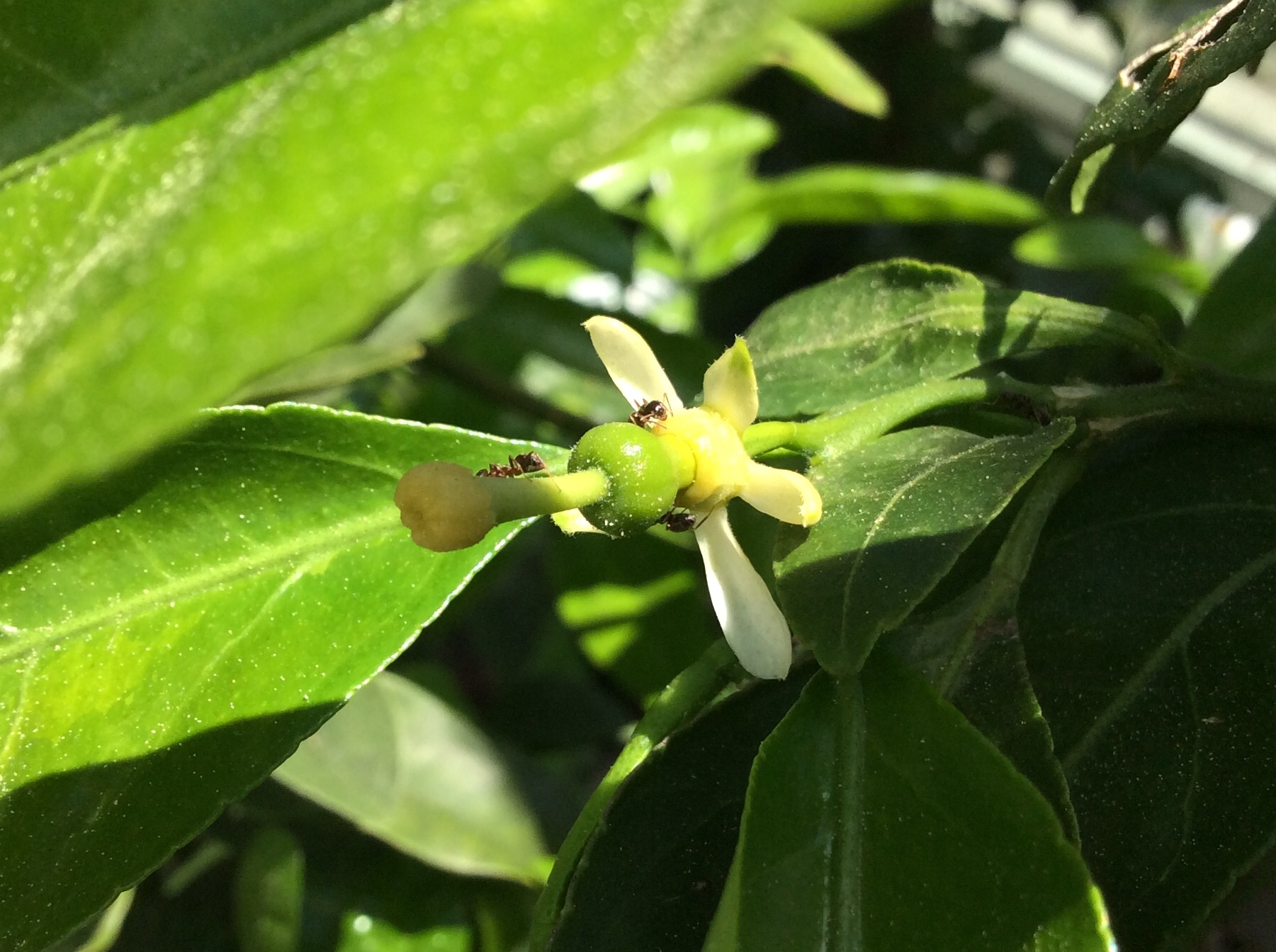 Meine vielen Citrus Pflanzen wachsen alle so vor sich hin, was Pflanzen eben so machen wenn ich mal nicht hingucke. Ich habe wie auf dem Foto zu sehen 4 Grapefruit Pflanzen in einem gemeinsamen Topf die schon ein bewegtes Leben hinter sich haben. Die Pflanzen hatten schon 2x kräftigen Schildlausbefall und ich war jedes Mal kurz davor ihnen meine grüne Tonne von innen zu zeigen. Letztendlich hat nur eine radikale chemielose Maßnahme geholfen, und zwar die Pflanzen für längere Zeit komplett unter Wasser zu stellen. Die Pflanzen haben mir diese Maßnahme verziehen, die Schildläuse fanden's nicht so lustig. Nachdem sie dann langsam weitergewachsen sind habe ich als Teil eines nachbarschaftlichen Übertopf-Set-Kaufs so einen hohen Topf erstanden mit dem ich anfangs gar nix anzufangen wusste. Um ihn loszuwerden habe ich ihn unter meine Grapefruits gestellt, und irgendwie bekommen sie nun ungeplanterweise mehr Licht und schießen mit großen dunkelgrünen Blättern in die Höhe. Ob und wann ich die 4 Pflanzen trenne (einschließlich einer wilden Spuckpalme im Topf) habe ich noch nicht entschieden, im Moment fühlen sie sich noch ganz wohl so eng umschlungen.