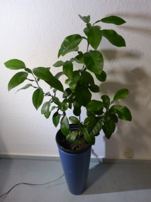 Meine vielen Citrus Pflanzen wachsen alle so vor sich hin, was Pflanzen eben so machen wenn ich mal nicht hingucke. Ich habe wie auf dem Foto zu sehen 4 Grapefruit Pflanzen in einem gemeinsamen Topf die schon ein bewegtes Leben hinter sich haben. Die Pflanzen hatten schon 2x kräftigen Schildlausbefall und ich war jedes Mal kurz davor ihnen meine grüne Tonne von innen zu zeigen. Letztendlich hat nur eine radikale chemielose Maßnahme geholfen, und zwar die Pflanzen für längere Zeit komplett unter Wasser zu stellen. Die Pflanzen haben mir diese Maßnahme verziehen, die Schildläuse fanden's nicht so lustig. Nachdem sie dann langsam weitergewachsen sind habe ich als Teil eines nachbarschaftlichen Übertopf-Set-Kaufs so einen hohen Topf erstanden mit dem ich anfangs gar nix anzufangen wusste. Um ihn loszuwerden habe ich ihn unter meine Grapefruits gestellt, und irgendwie bekommen sie nun ungeplanterweise mehr Licht und schießen mit großen dunkelgrünen Blättern in die Höhe. Ob und wann ich die 4 Pflanzen trenne (einschließlich einer wilden Spuckpalme im Topf) habe ich noch nicht entschieden, im Moment fühlen sie sich noch ganz wohl so eng umschlungen.