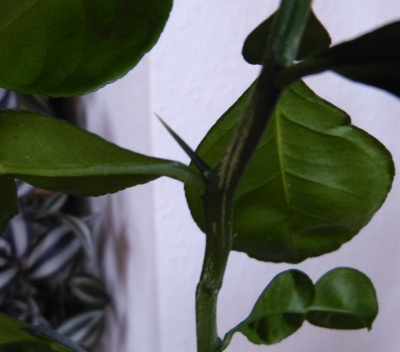 Ich bin so lieb zu meinen Zitruspflanzen und gieße so regelmäßig dass die es aufgegeben haben Dornen auszutreiben. Halt, doch, eine habe ich entdeckt, geschätzt vielleicht 2-3 cm lang...