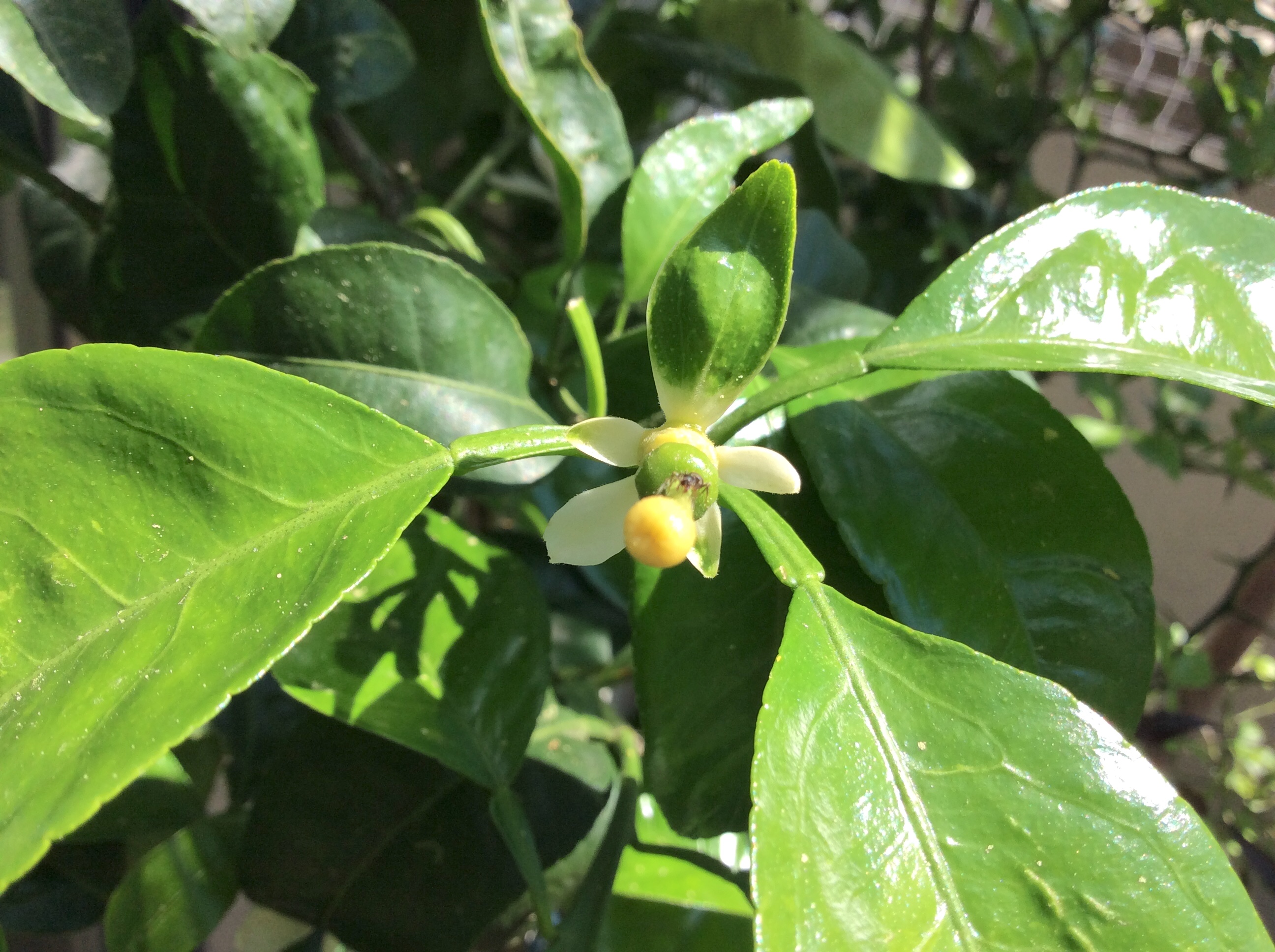 In diesem Jahr ist die 'US-119' wohl mein Highlight unter den Citrus. Erste Blühsaison, die grossen Blüten mit tollem Duft, die lustigen Mutationen … Die Laub-Kelch-Blütenblätter an den Fruchtansätzen sehen einfach kurios aus: