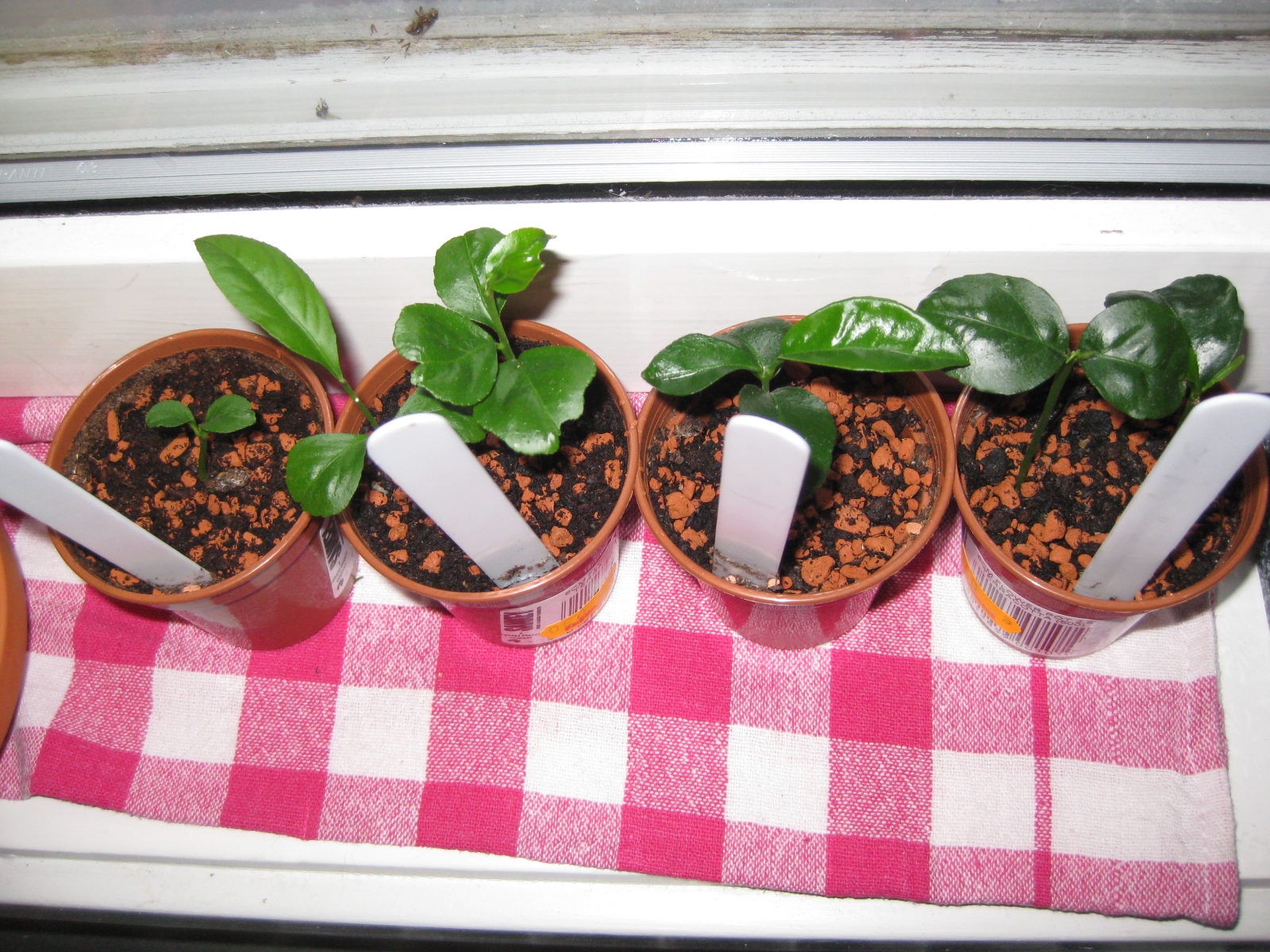 Die beiden Blutorangen gefallen mir am Besten...der eine ist ein Zwilling geworden und der andere ein Drilling. Die ersten Blätter haben eine "komische" Form, ein bisschen wie Herzen. Zitrone und Clementine sind die Größten und Kräftigsten.