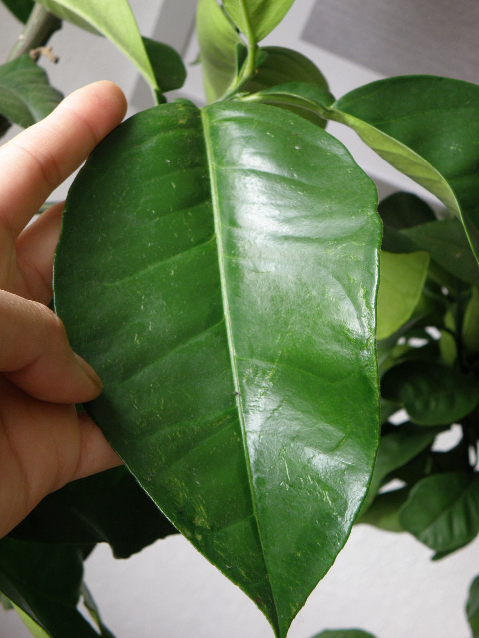 Habe hier noch bilder von der citrus maxima, pampelmuse... und ihre blätter.. da find ich da hat sie ihren namen echt verdient... die blätter sind riesig..