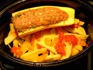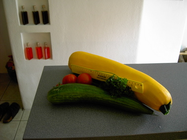 Man (n Frau) erntet eine Zuchini