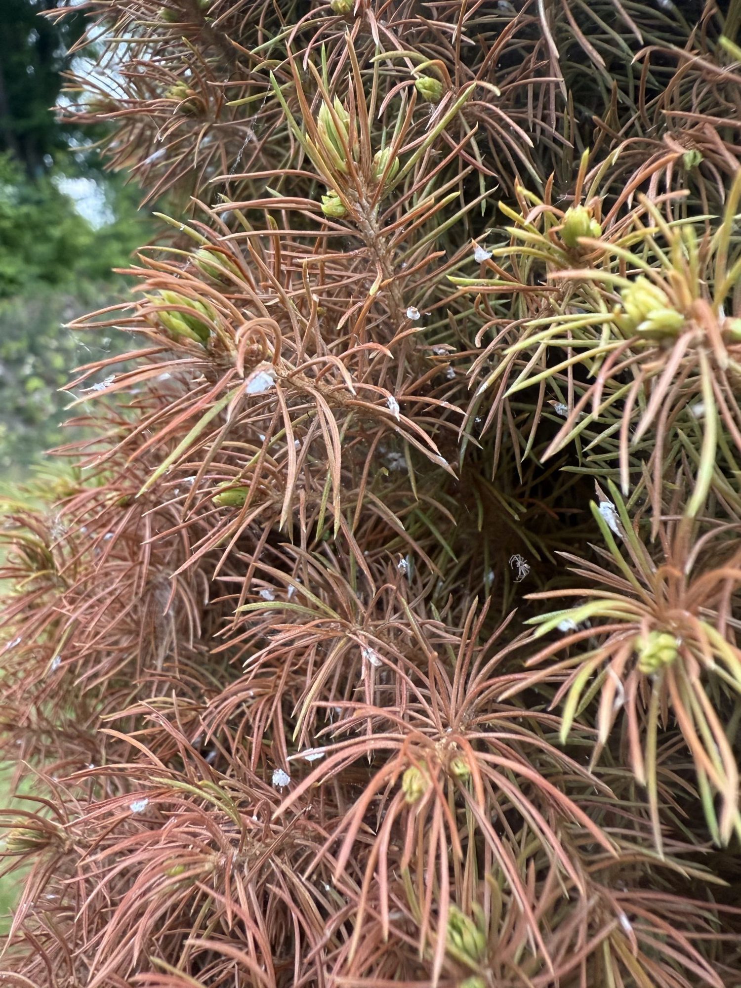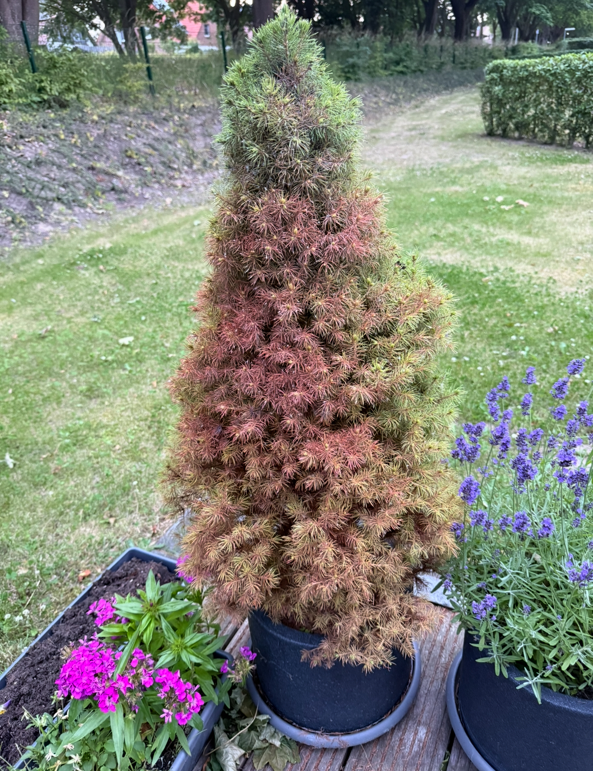 Es geht um 3x 3jährige Zuckerhutfichten im Topf mit praller Südausrichtung im Norden Deutschlands mit reichlich Wind. Sie wurden mäßig - großzügig gegossen- Staunässe kann ausgeschlossen werden. Habe eine probeweise ausgetopft: Wurzeln sehen toll aus, alles war feucht und kein Schimmel oder Ähnliches.