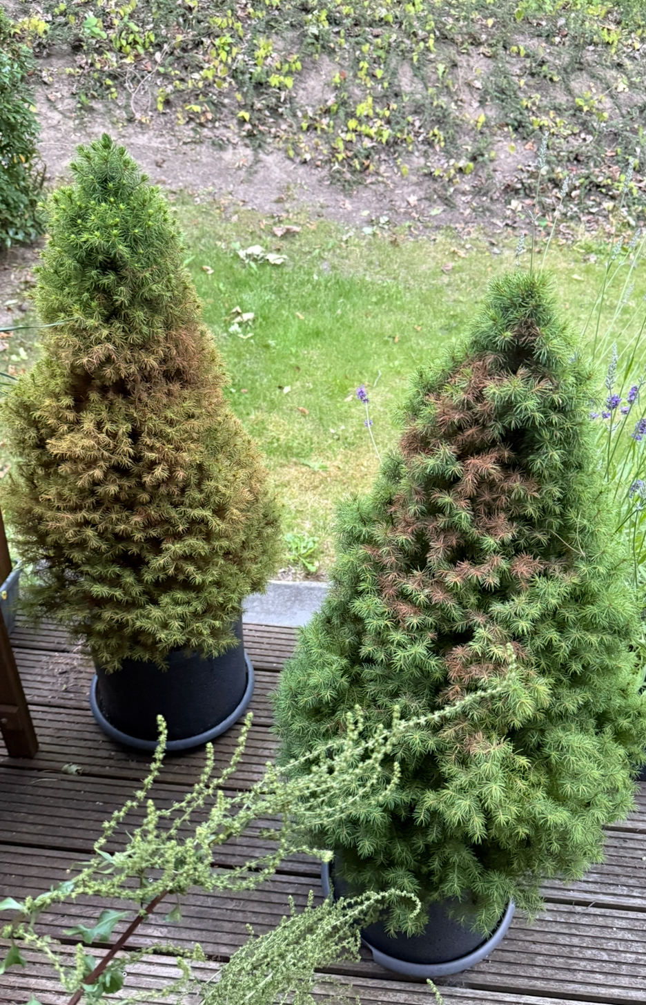 Es geht um 3x 3jährige Zuckerhutfichten im Topf mit praller Südausrichtung im Norden Deutschlands mit reichlich Wind. Sie wurden mäßig - großzügig gegossen- Staunässe kann ausgeschlossen werden. Habe eine probeweise ausgetopft: Wurzeln sehen toll aus, alles war feucht und kein Schimmel oder Ähnliches.
