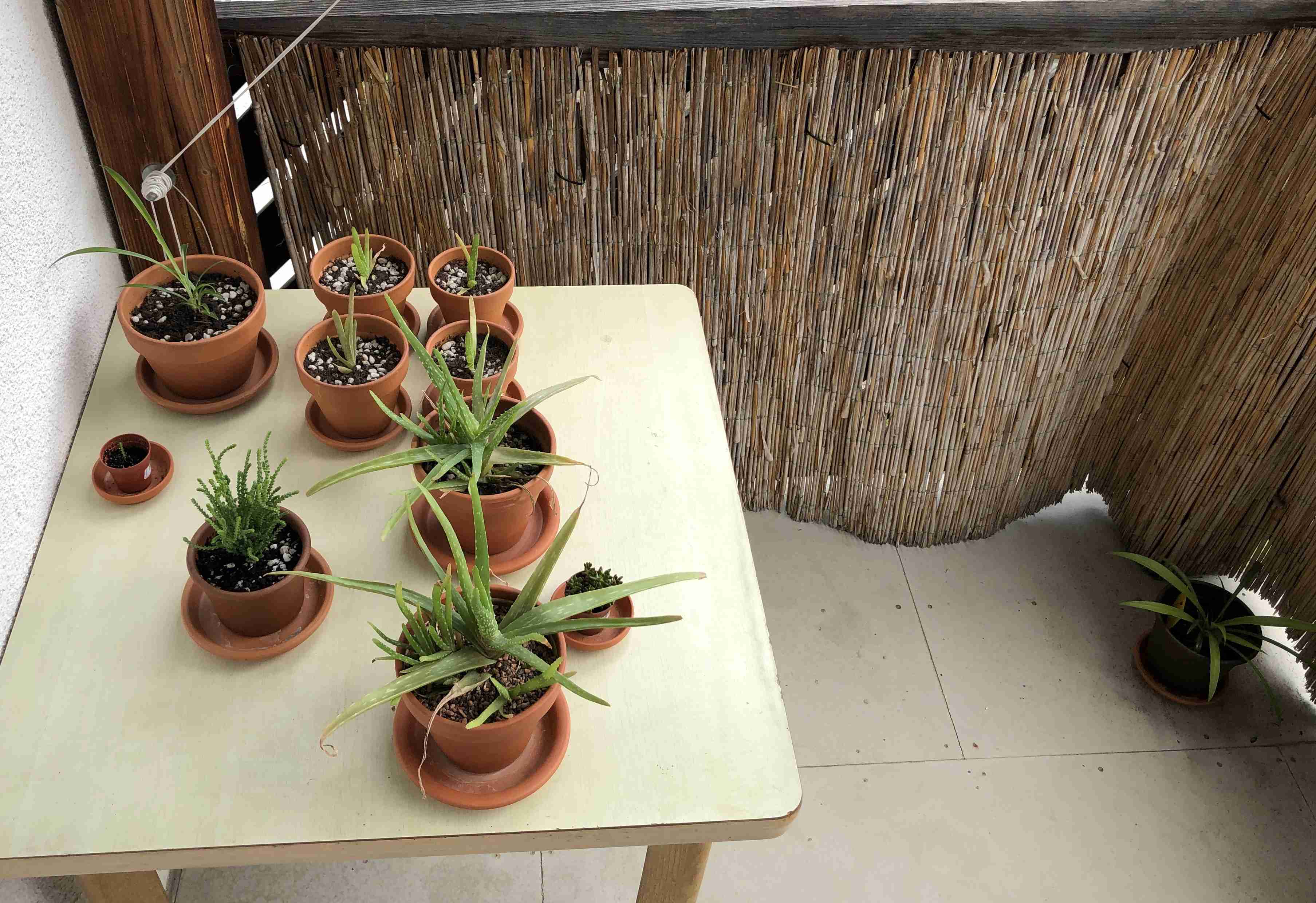 Die Ableger habe ich erst vor ein paar Tagen umgepflanzt, nachdem sie in kleineren Töpfen über Monate hinweg nicht wuchsen. Als ich öfters gegossen habe, ist bei einer ein kleiner Ableger gesprießt und bei einer anderen kommt ein neues Blatt. Deshalb habe ich sie in etwas größere Töpfe verpflanzt.
